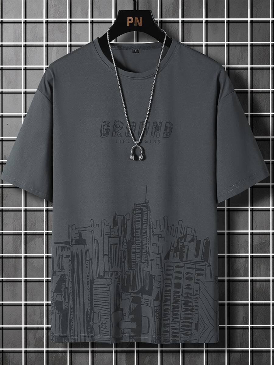تيشيرت رجالي أنيق بلون رمادي غامق بتصميم عصري بسيط، مزين بطبعة ناعمة لمدينة في الأسفل وشعار صغير في المنتصف يمنح مظهر شبابي مميز. خامة القماش ناعمة ومريحة على البشرة، مناسبة للاستخدام اليومي أو الطلعات الكاجوال. تصميمه العملي يجمع بين الراحة والأناقة في قطعة واحدة.