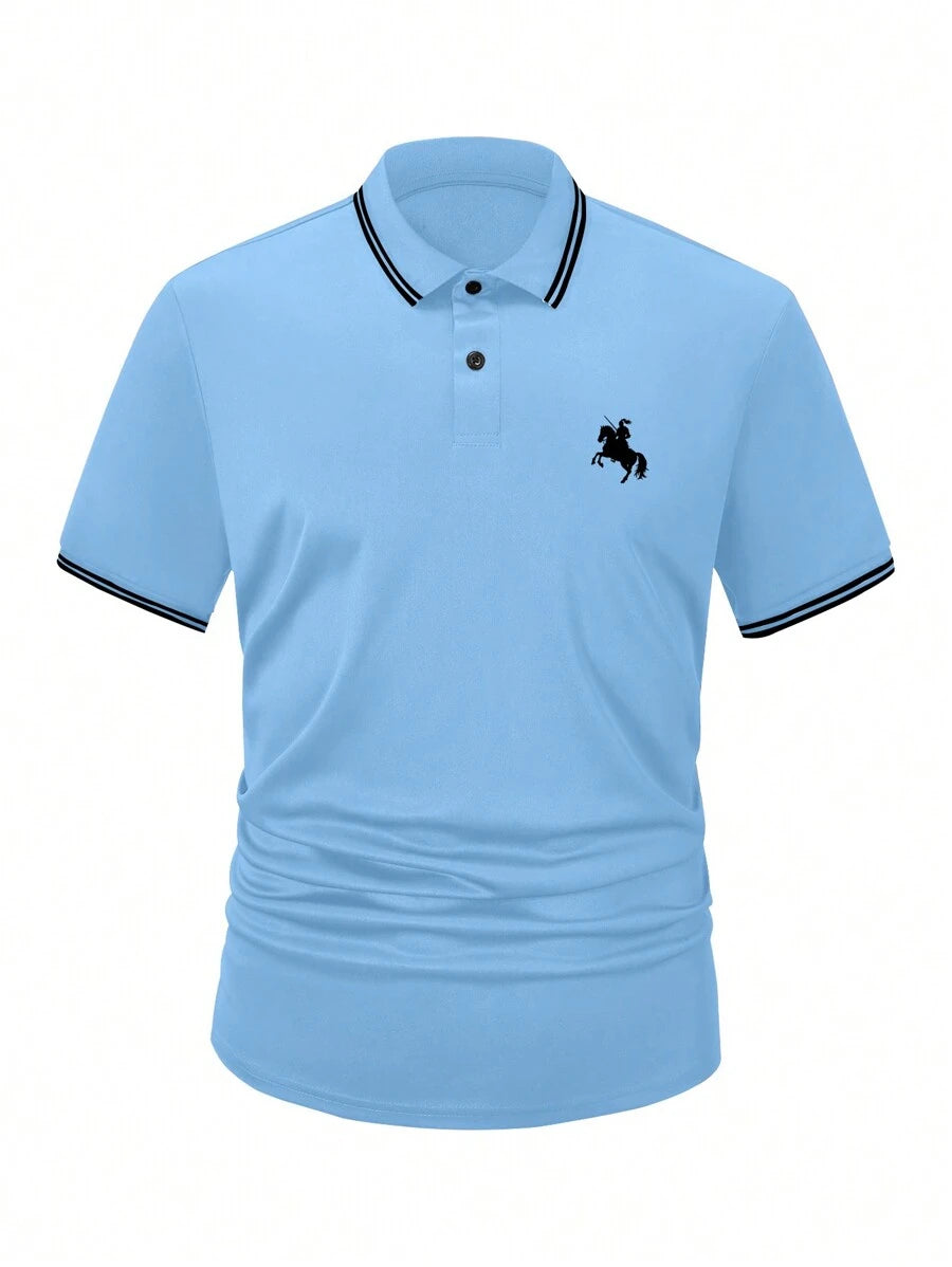 قميص بولو رجالي كاجوال بأكمام قصيرة وطبعة حصان