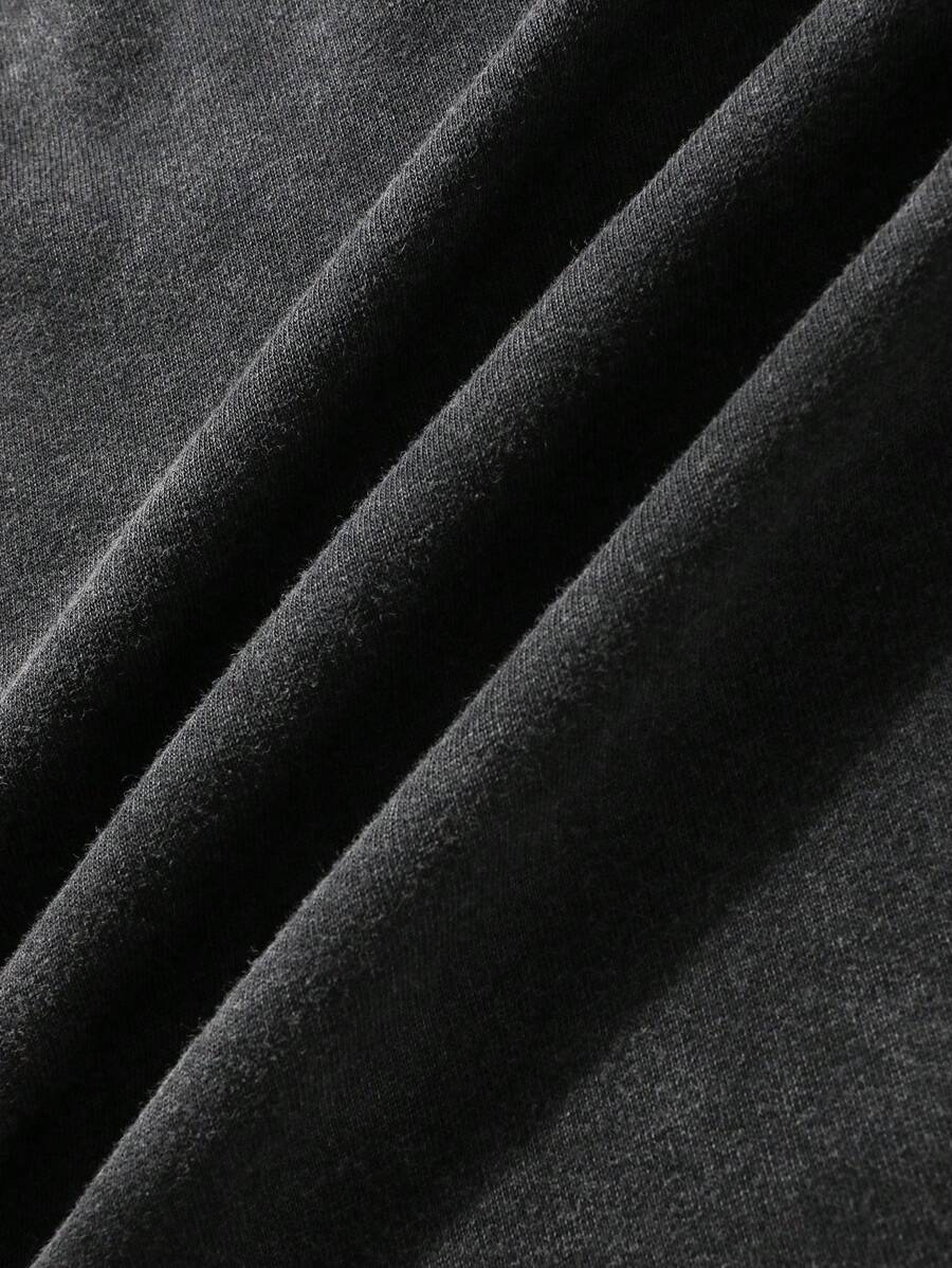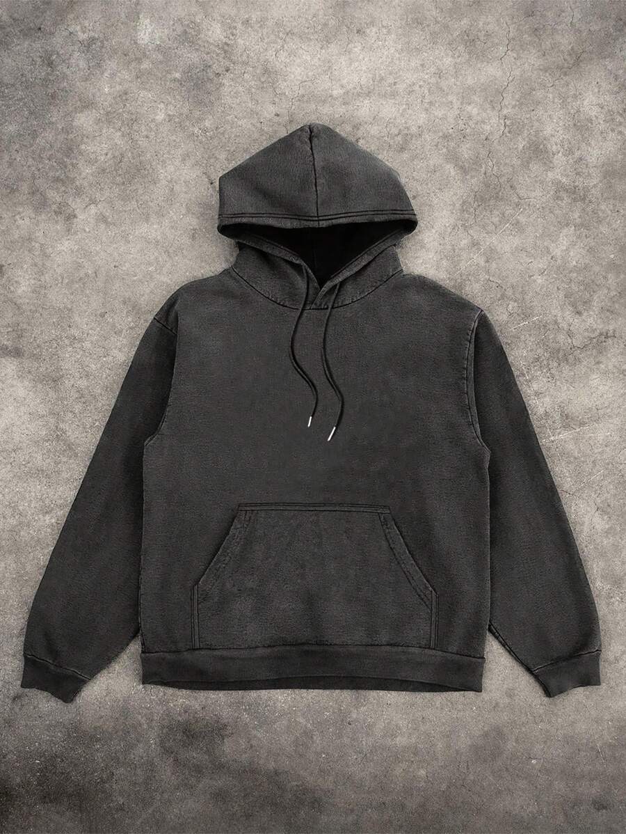 سويت شيرت بلمسة عصرية شبابية. تأتي باللون الأسود القاتم مع قبعة رأس مريحة وتصميم مطبوع على الظهر باللون الأبيض يظهر صورة فنية لشخص يرفع رأسه للأعلى