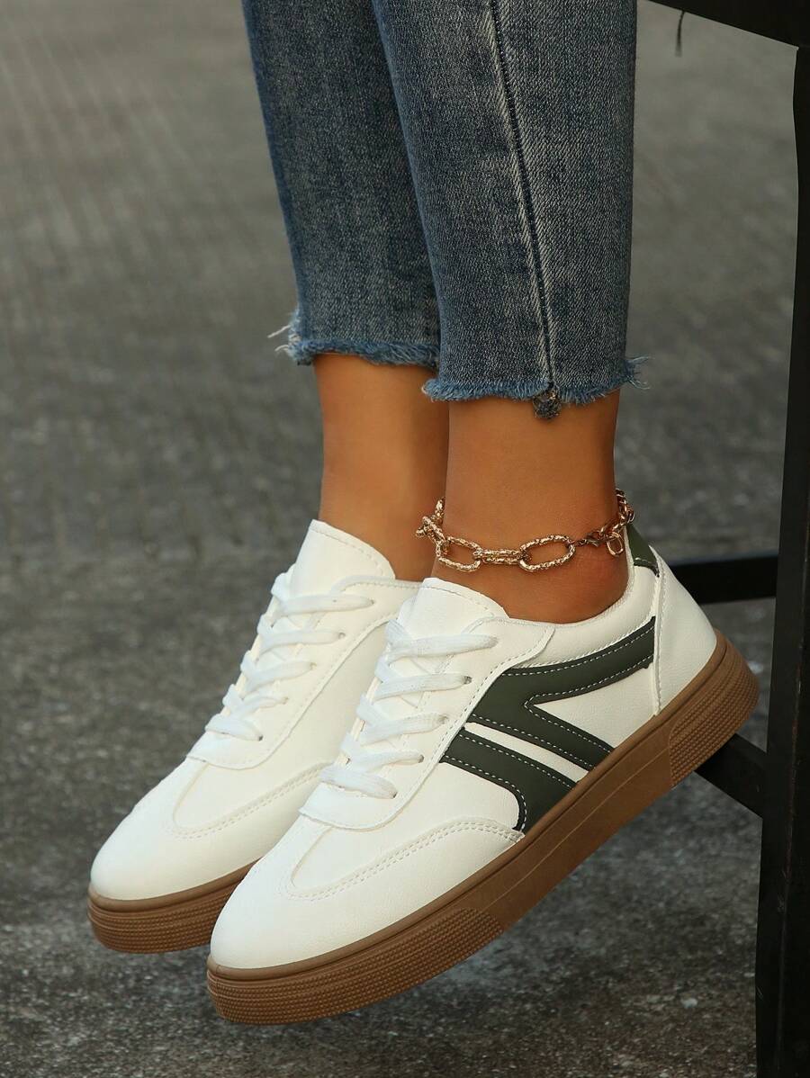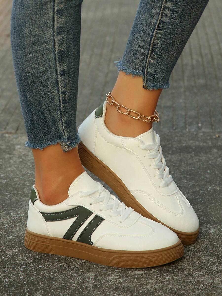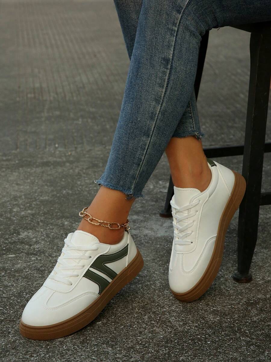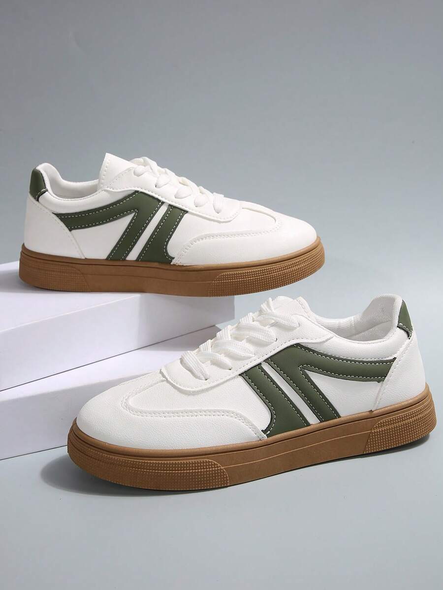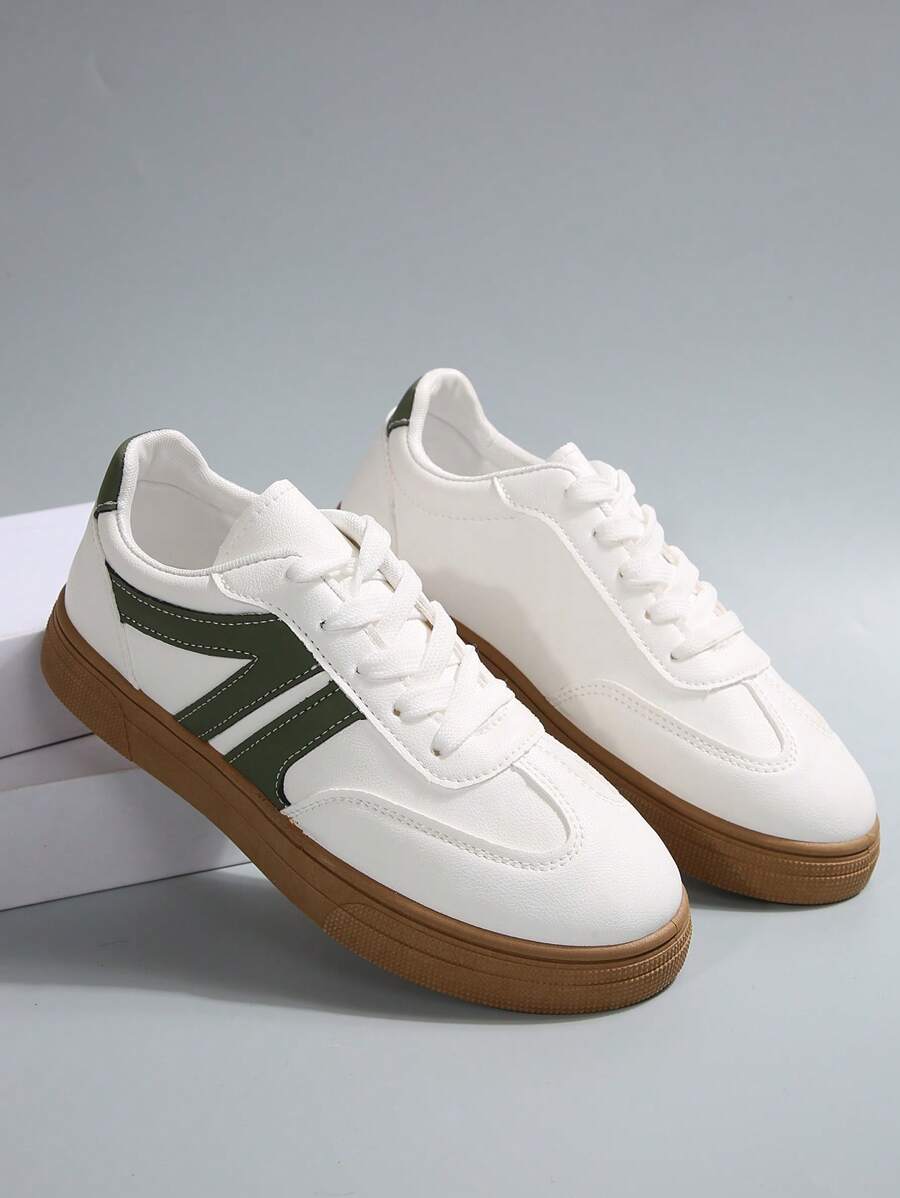 حذاء رياضي رجالي أبيض بتفاصيل خضراء من Shein