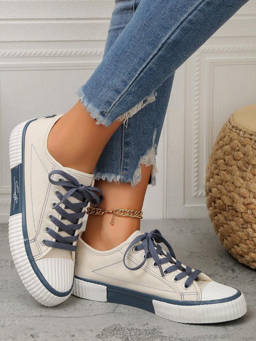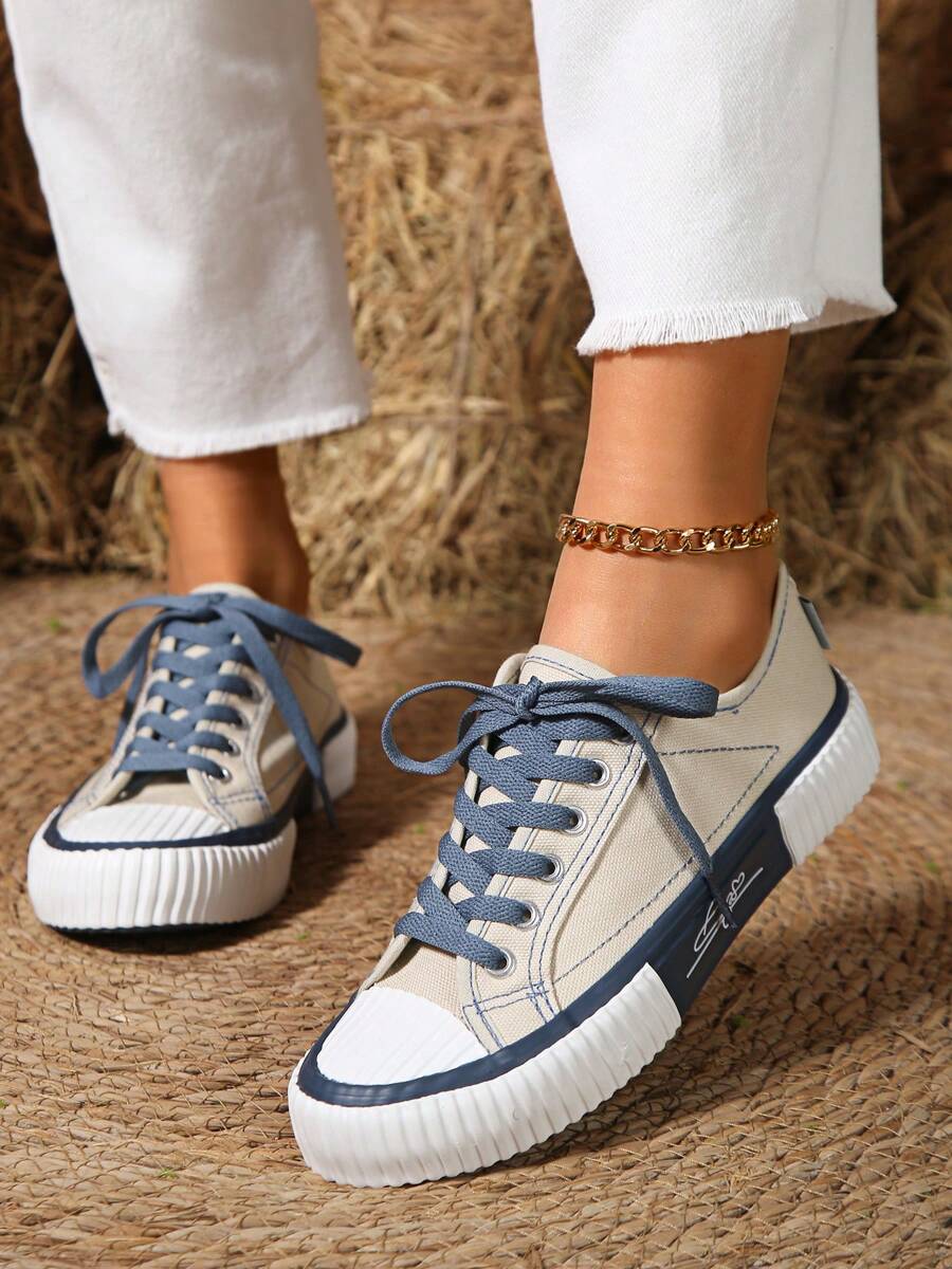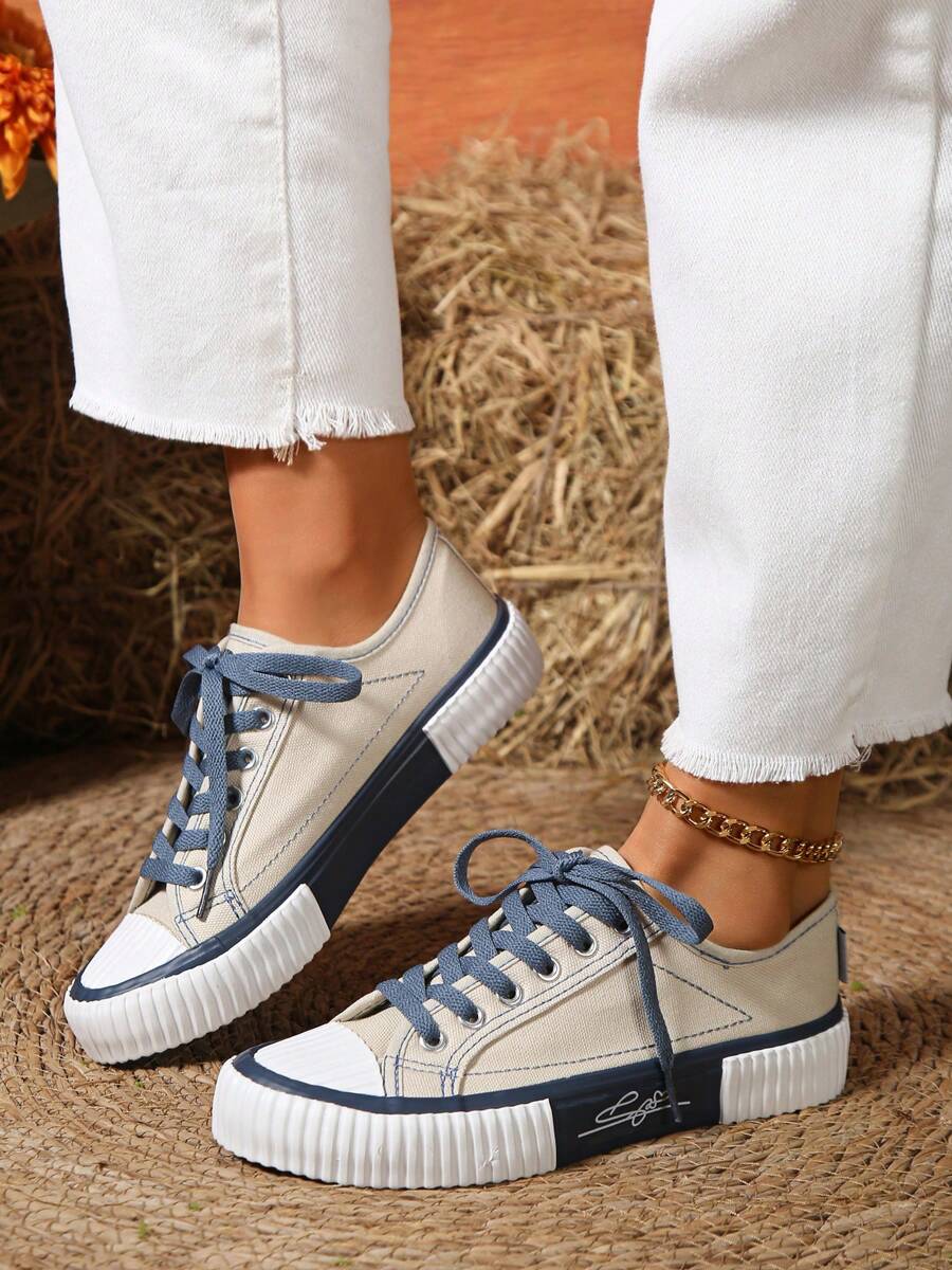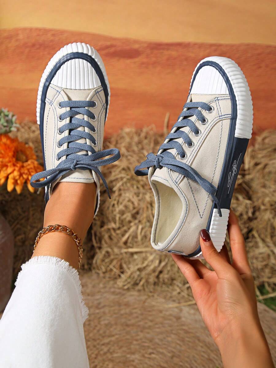 زوج واحد من أحذية أكسفورد النسائية العصرية بألوان متباينة، 2025 أوائل الربيع/الصيف/الخريف الجديدة برباط، أحذية مسطحة مريحة غير رسمية متعددة الاستخدامات، مناسبة للأنشطة الخارجية، تتماشى مع أي ملابس، أحذية رياضية للنساء