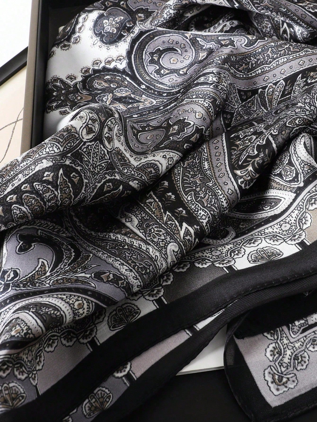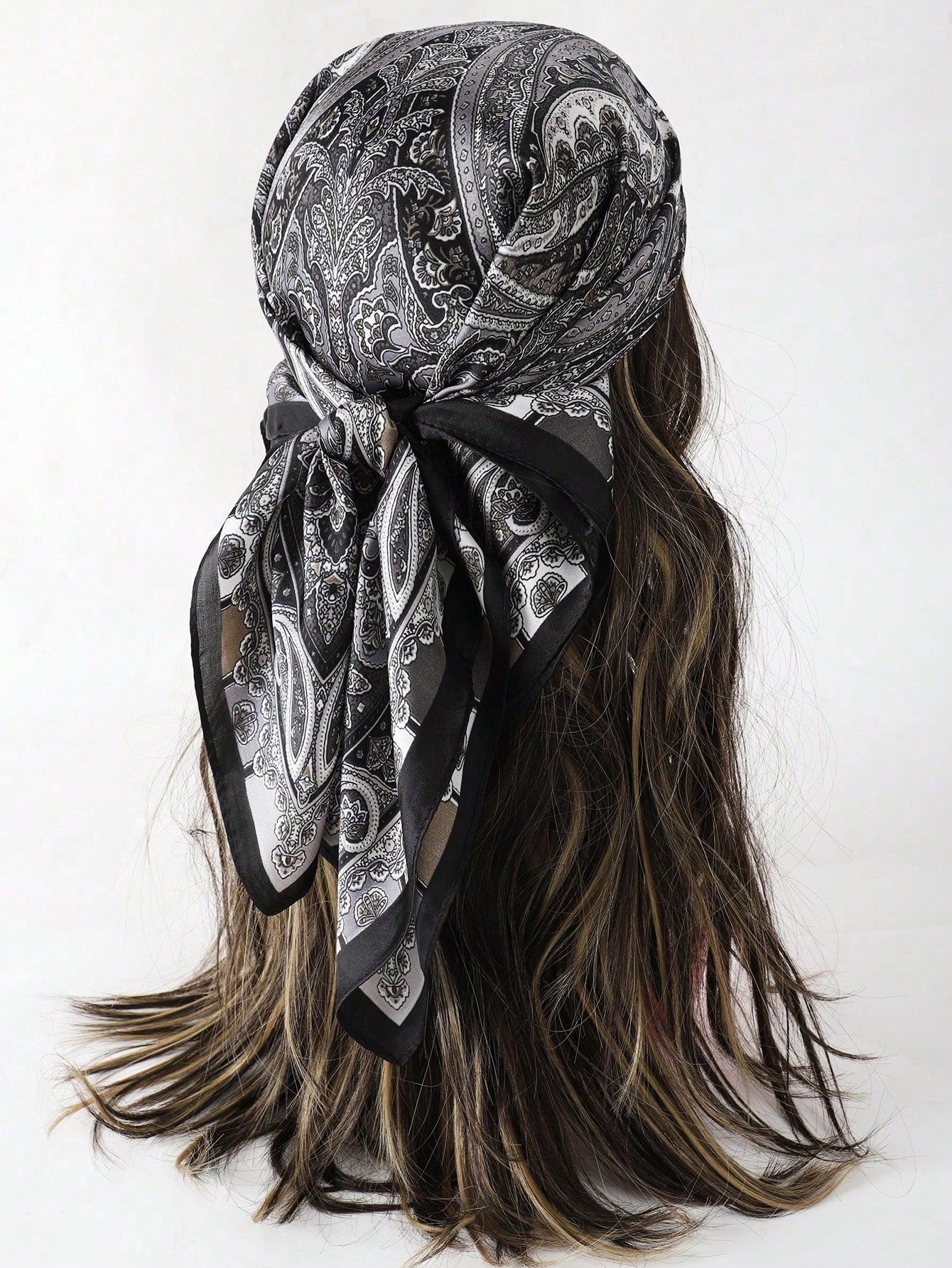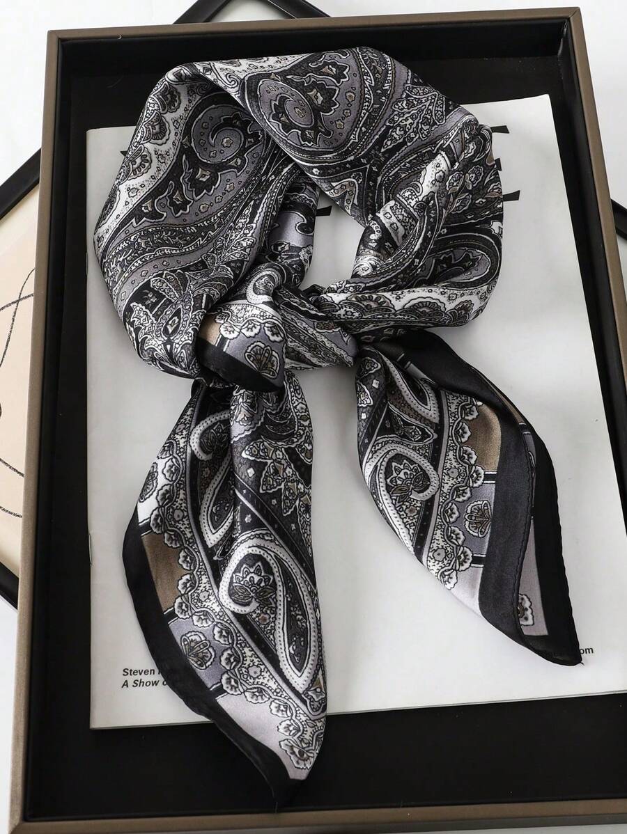 قطعة واحدة من وشاح الرأس/الرقبة من الساتان بطبعة بيزلي أنيقة على الطراز البوهيمي
