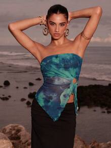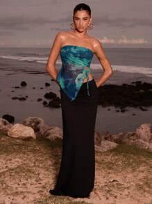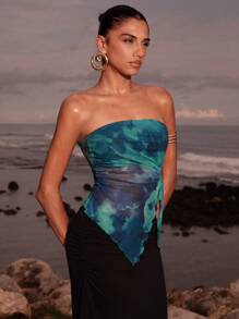 بلوزة نسائية ضيقة بدون حمالات بتصميم حافة مفتوحة من أوبيوليسا