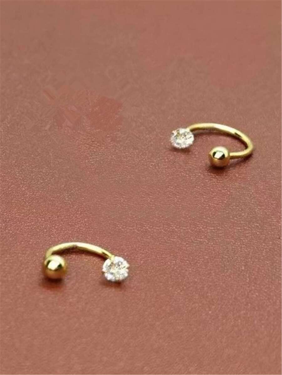زوج من أقراط (مسمار) ستانلس ستيل بمكعب زركونيا — 2 قطعة أنثوية أنيقة