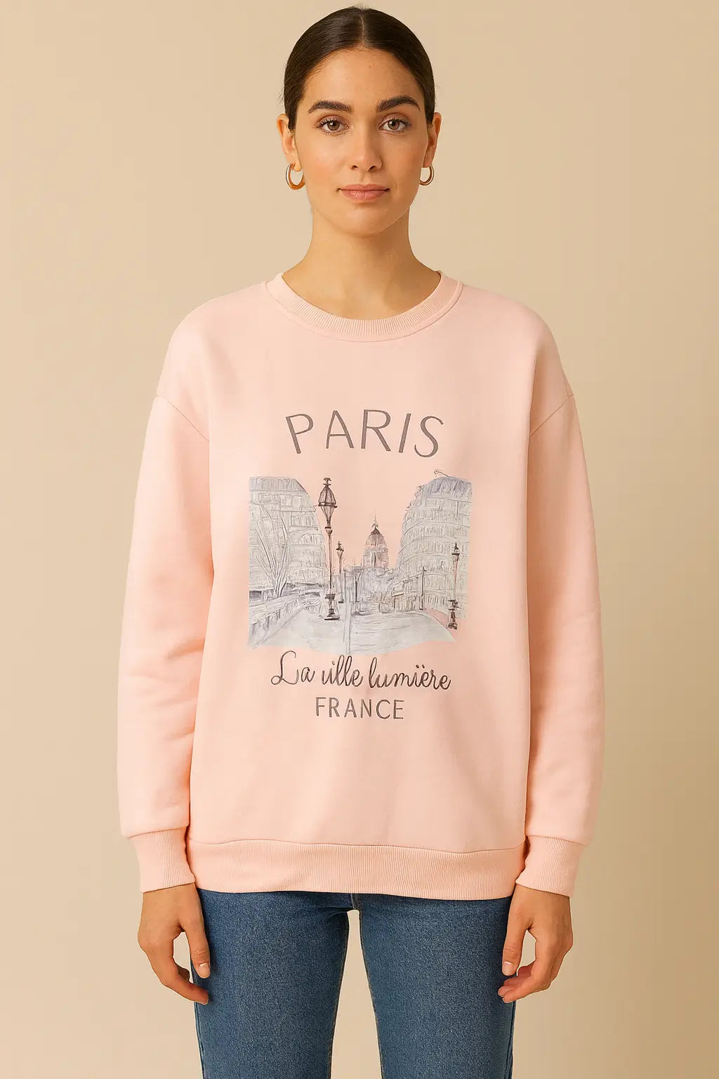 سويت شيرت أنيق باللون الوردي الفاتح من Shein بتصميم مميز مع طبعة باريس التي تضيف لمسة عصرية وحيوية. مصنوع من خامة ناعمة ومريحة من القطن والبوليستر، ويتميز بياقة دائرية وأكمام طويلة برباط مطاطي لثبات أفضل. قطعة مثالية للإطلالات الكاجوال اليومية تمنحك مزيجًا من الراحة والأناقة