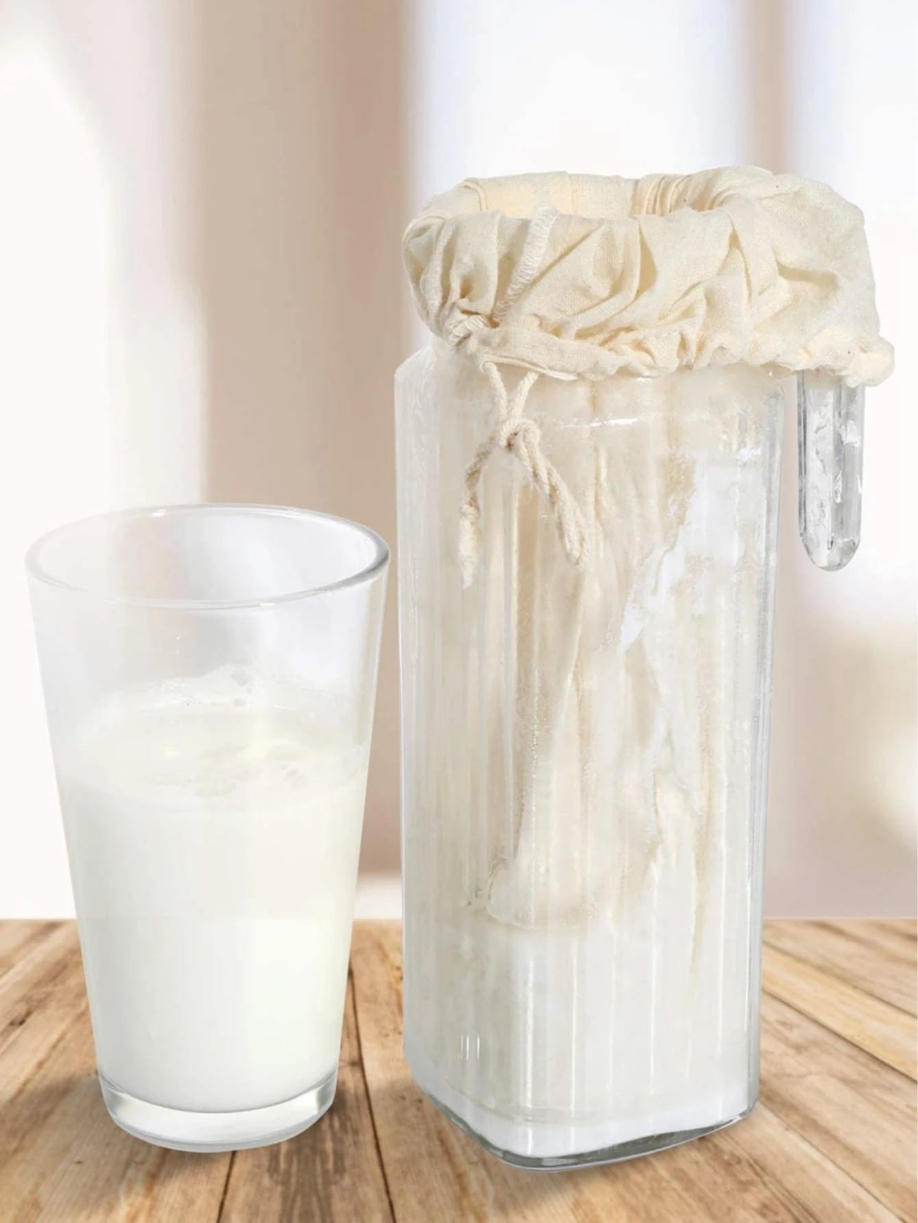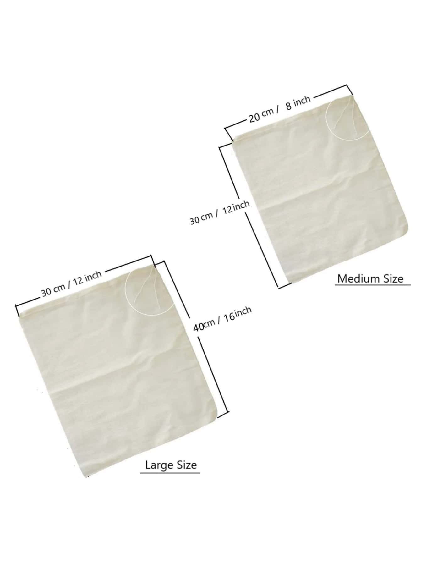حقيبة تصفية عالية الجودة مصنوعة من قماش مسلين غير مبيّض 100%، مثالية لتحضير حليب المكسرات، وتصفية العصائر، وصنع الجبن والزبادي. قابلة لإعادة الاستخدام، قوية وسهلة التنظيف، وتوفّر ترشيحًا ناعمًا للحصول على نتائج نقية وطبيعية في كل مرة.