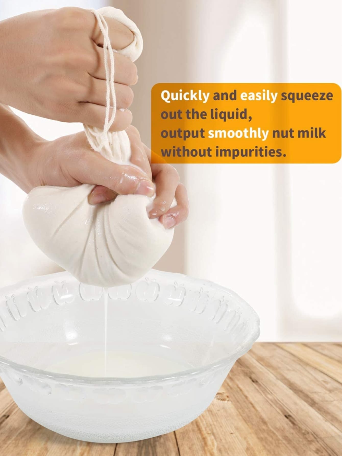 حقيبة حليب المكسرات وقطعة قماش للجبن قابلة لإعادة الاستخدام – قماش مسلين غير مبيّض 100%