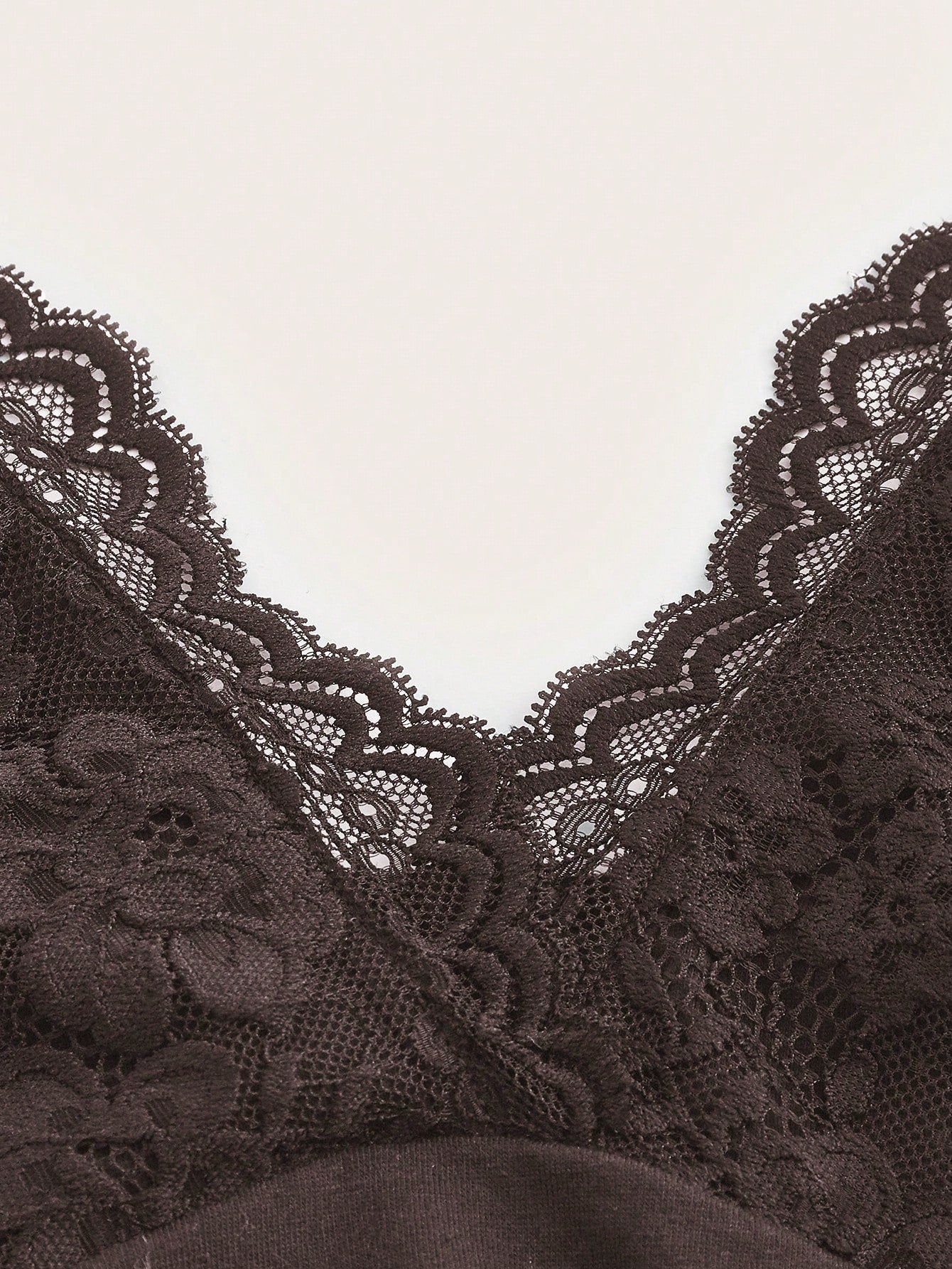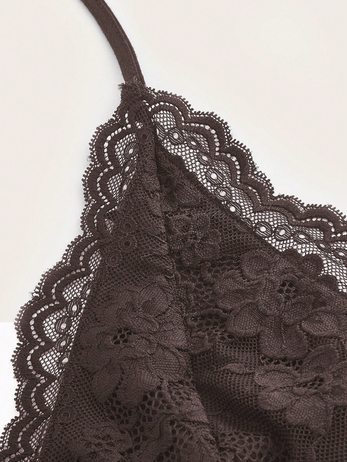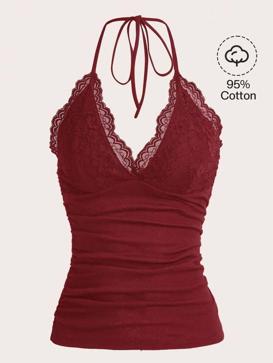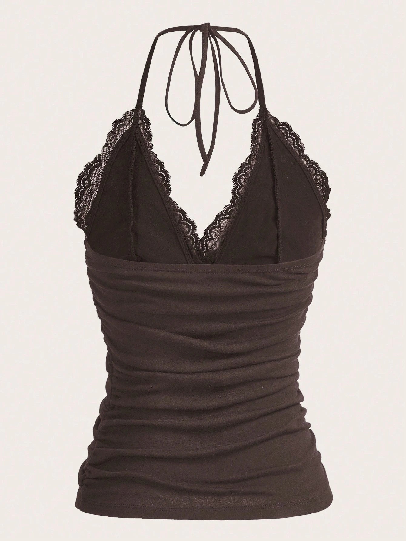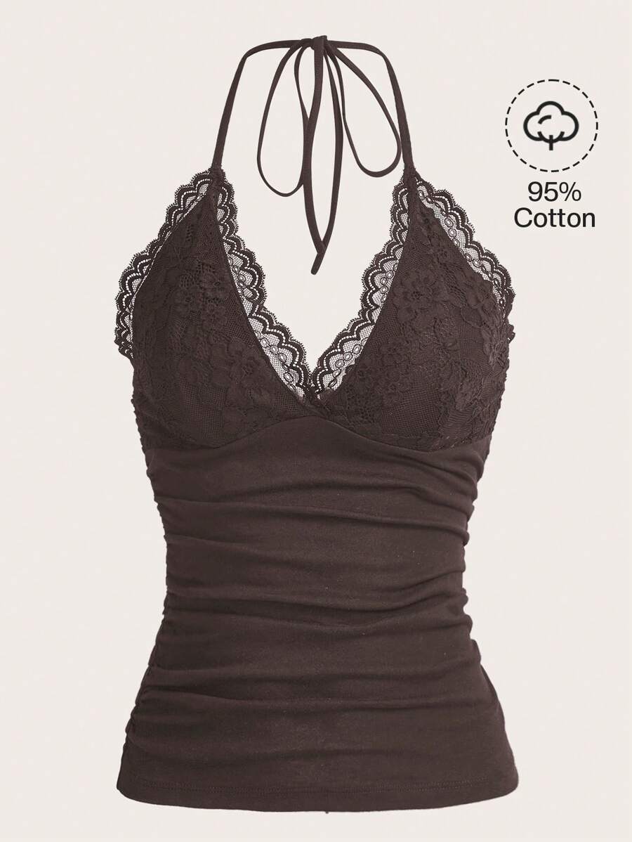 بلوزة ROMWE PUNK بتصميم هالتر مع كشكشة من الدانتيل المتباين