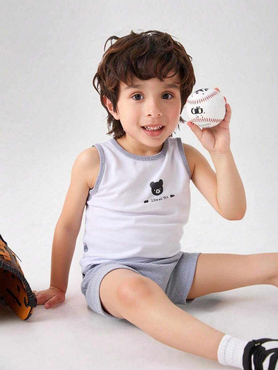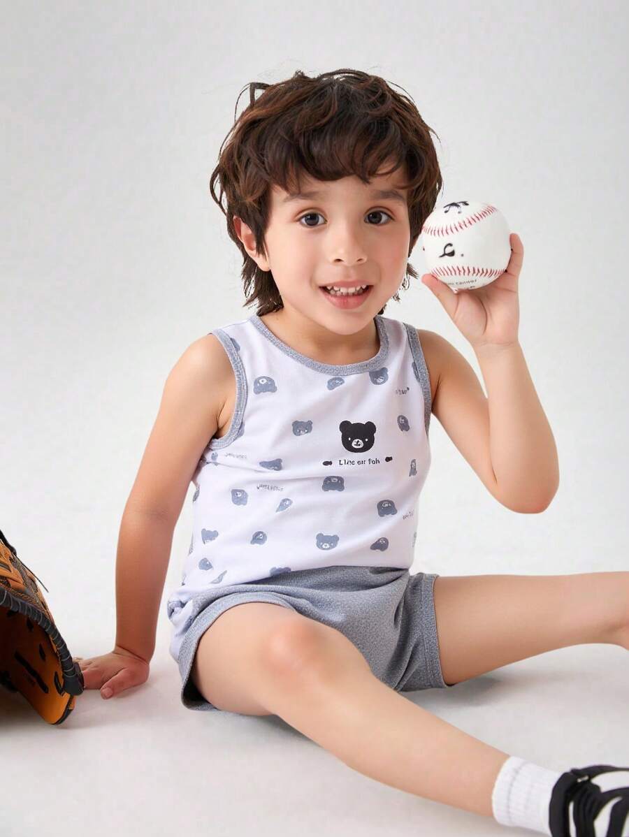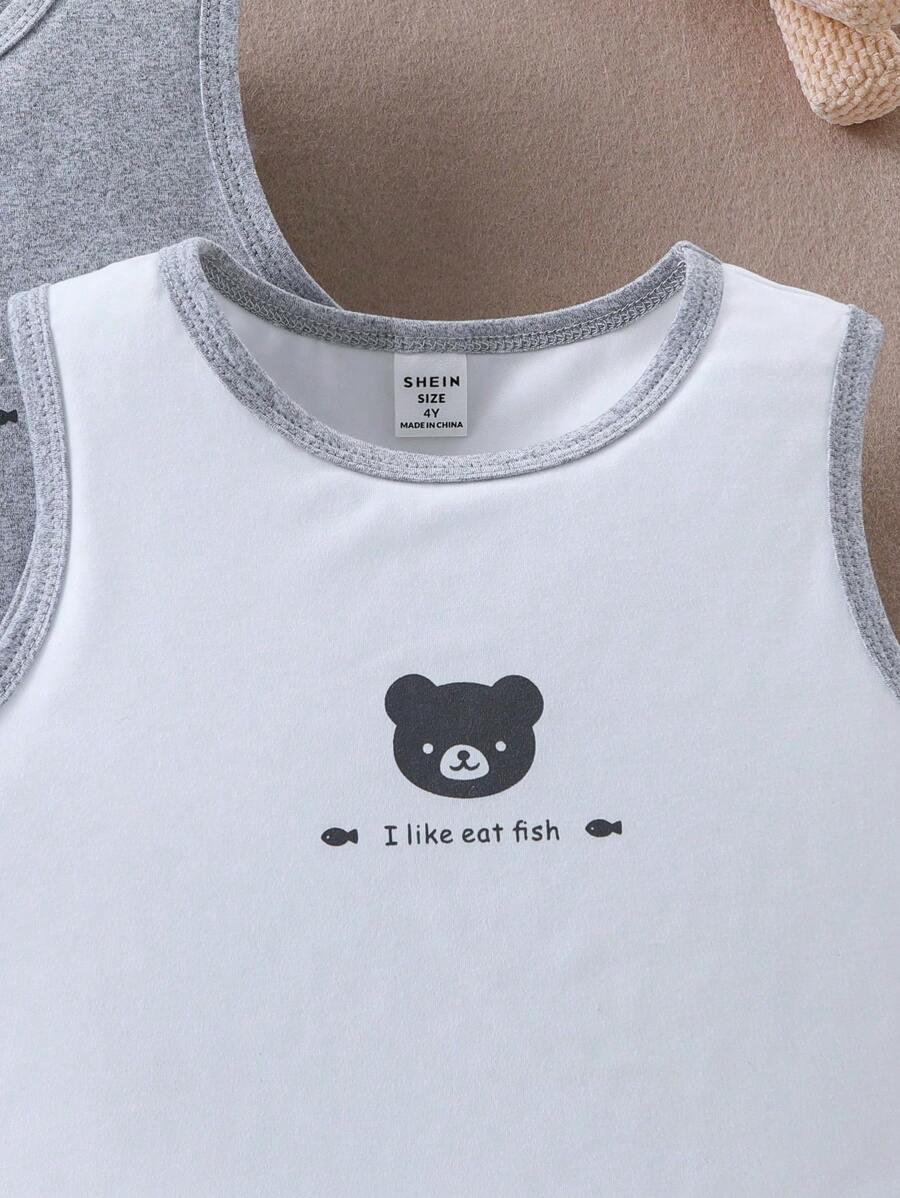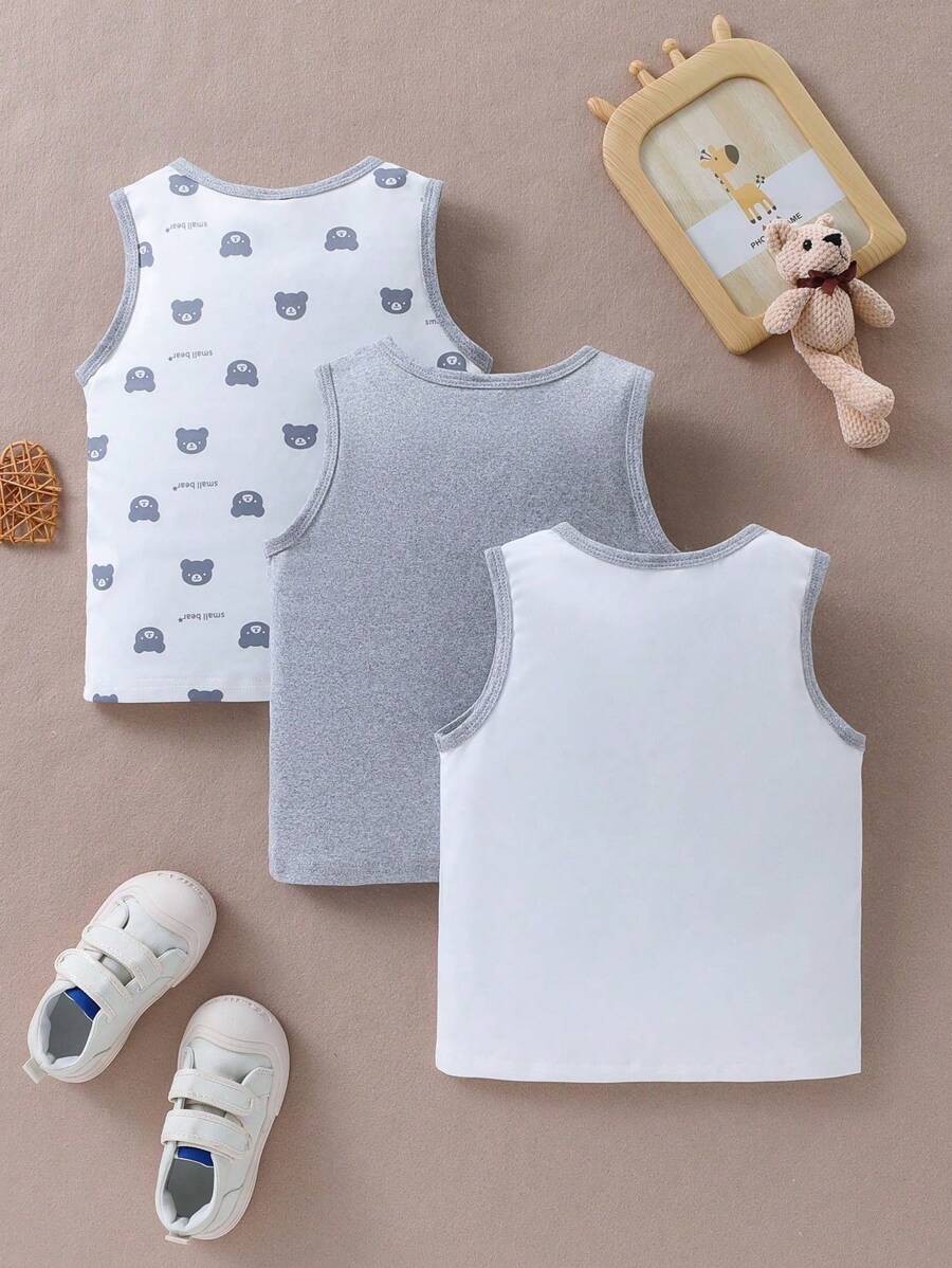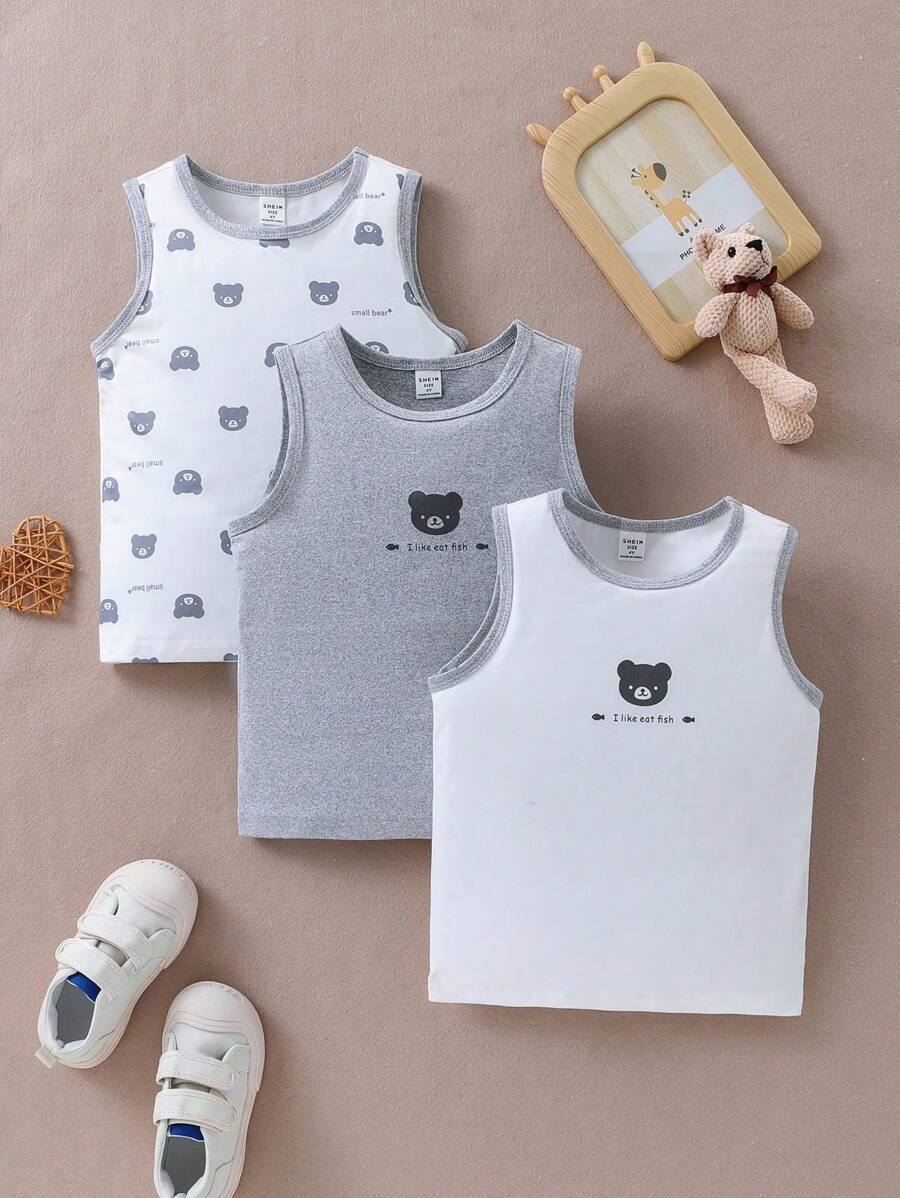 طقم ولادي (3 قطع) : توب كاجوال بطبعة دب بتصميم مريح