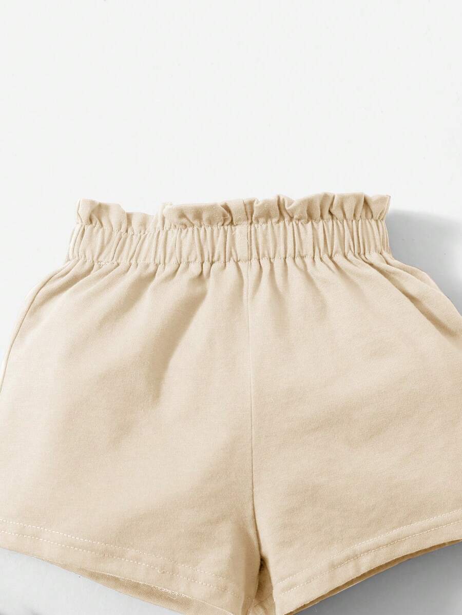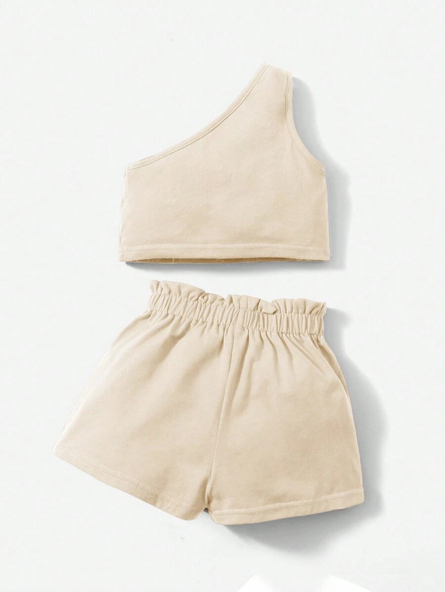 طقم بيبي بناتي من شي إن – تيشيرت بلا أكمام بكتف مائل مع شورت، 2 قطعة