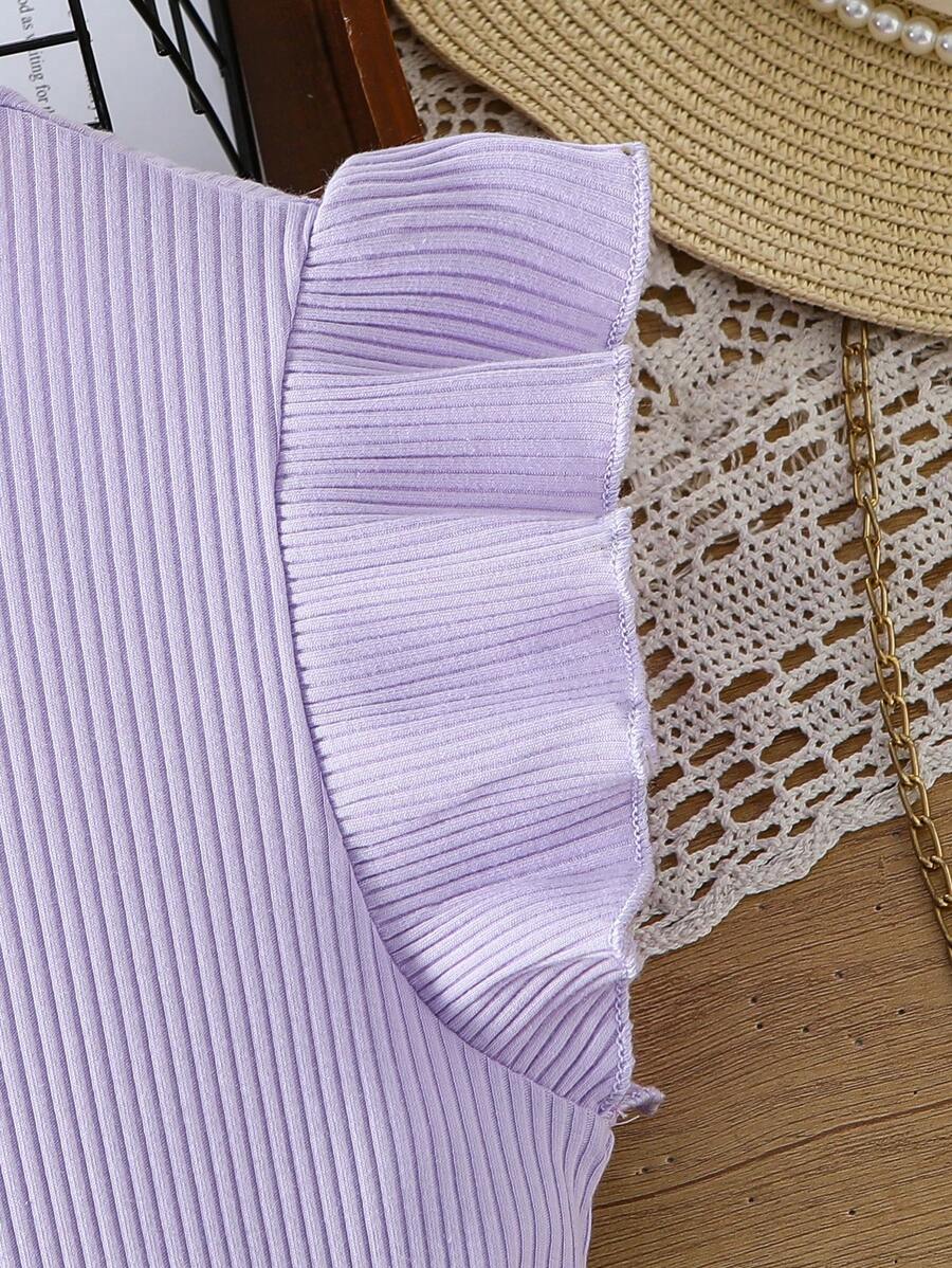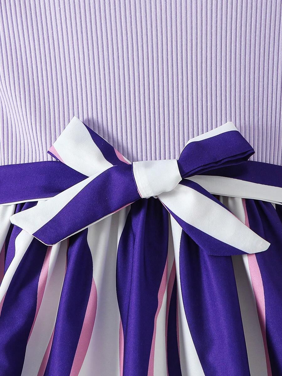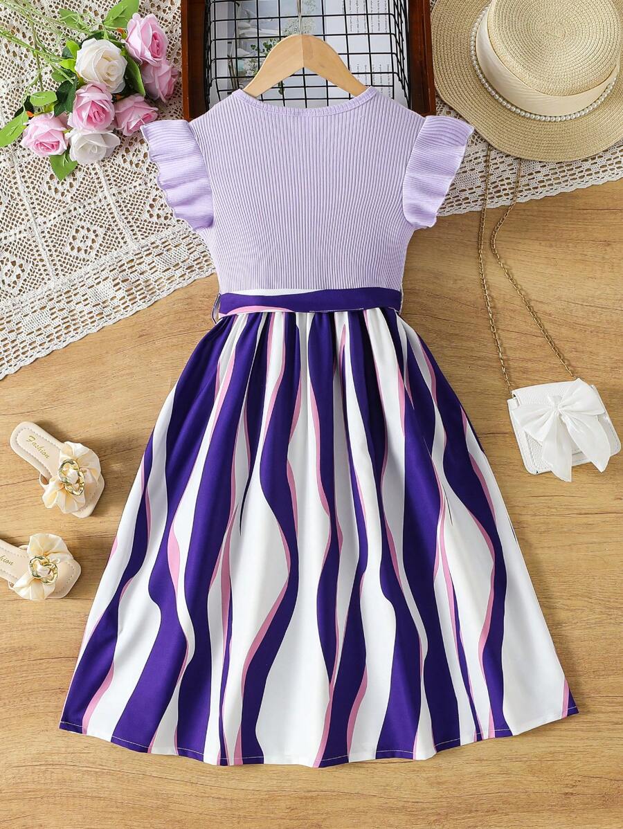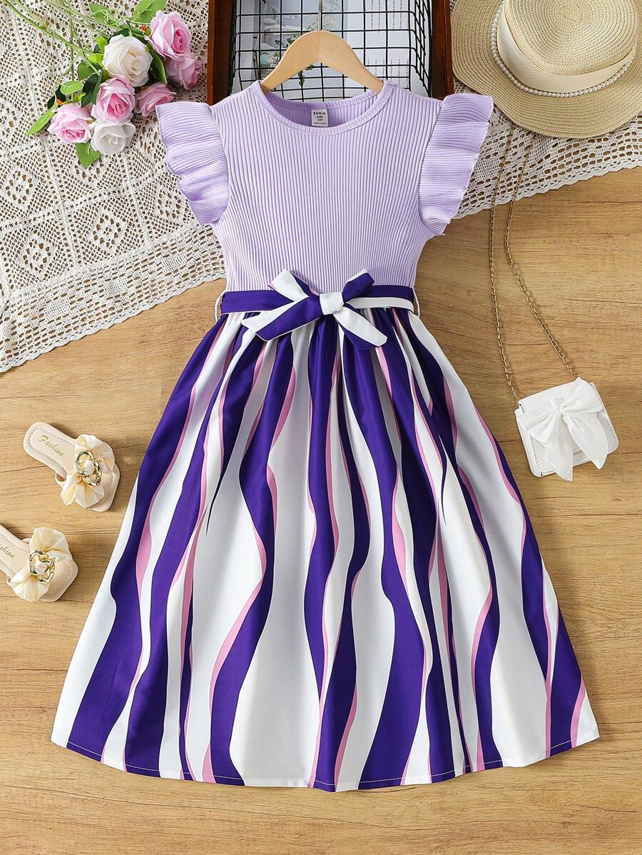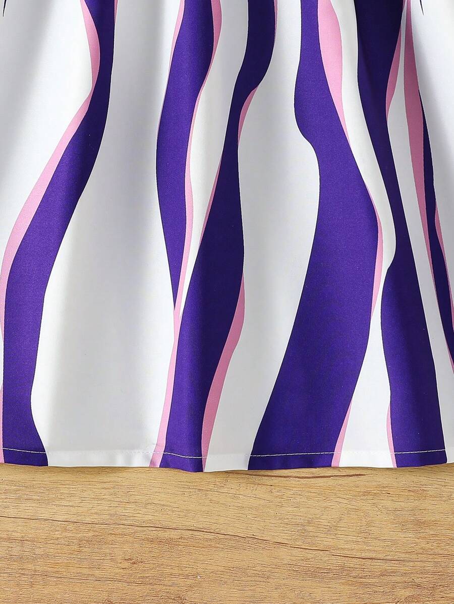 فستان SHEIN للفتيات المراهقات ذو رقبة دائرية وأكمام قصيرة ومخطط ومكشكش