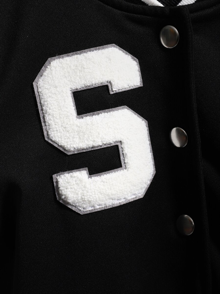 جاكيت رياضي SHEIN Explorewe للفتيات المراهقات مزين بخطوط ورقعة بدون تي شيرت