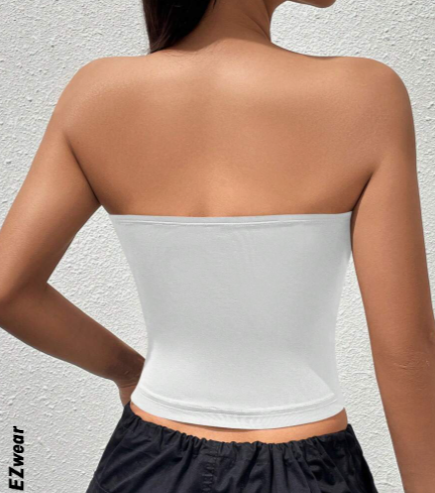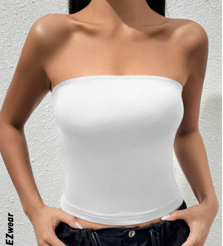 التصميم بدون أكمام (tube top) بيخلي الكتفين ظاهرين، ونمطها بسيط مع أي بنطال أو جيب تحبي.