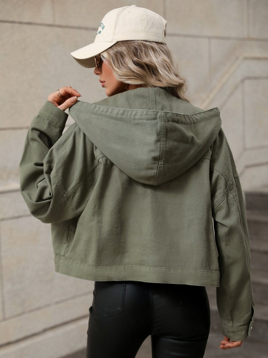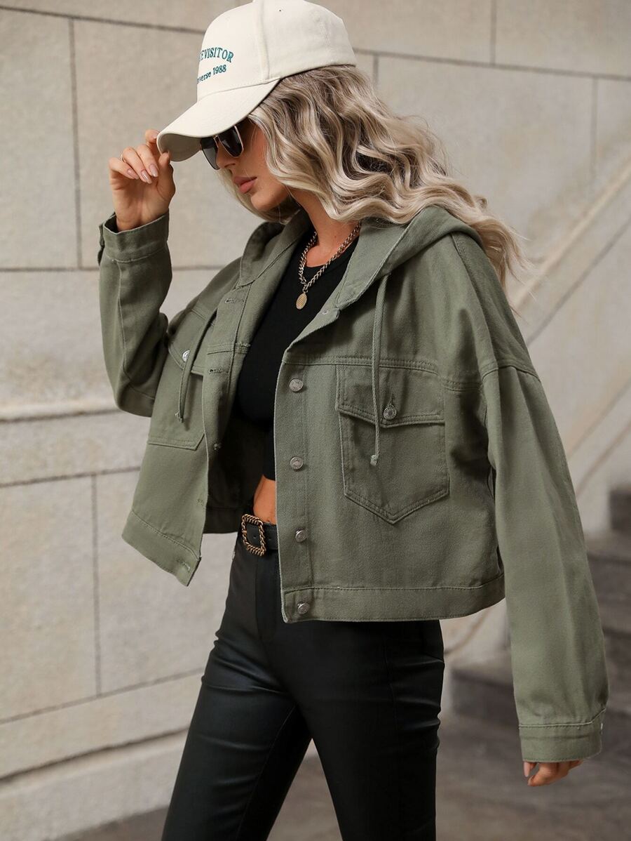 جاكيت جينز شتوي من SHEIN Frenchy بغطاء للرأس وجيب منسدلة وكتف منسدل ورباط