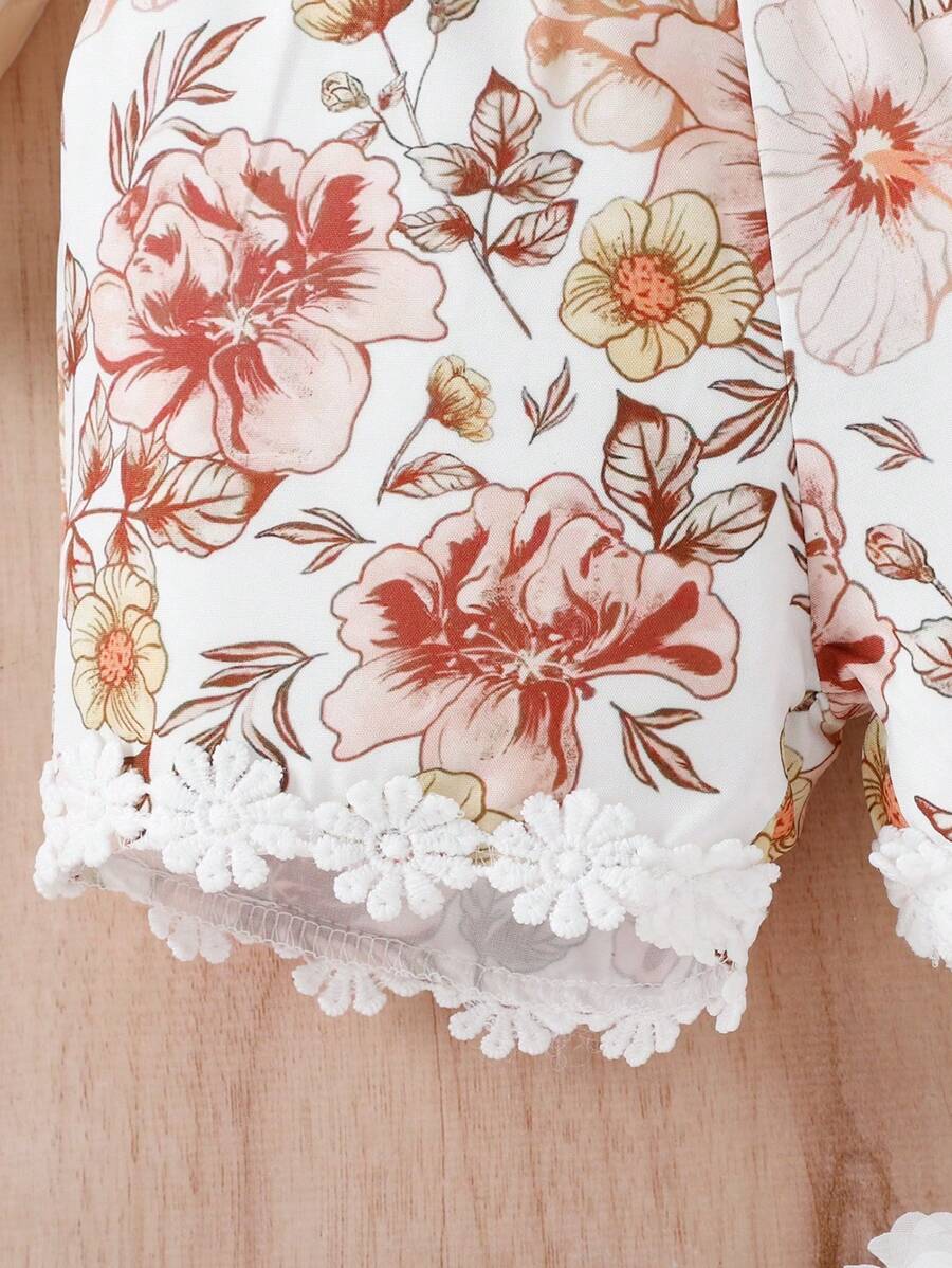 رومبير شي إن فينتاسايد كيدز بطبعة زهور وظهر متقاطع مع كامي للبنات