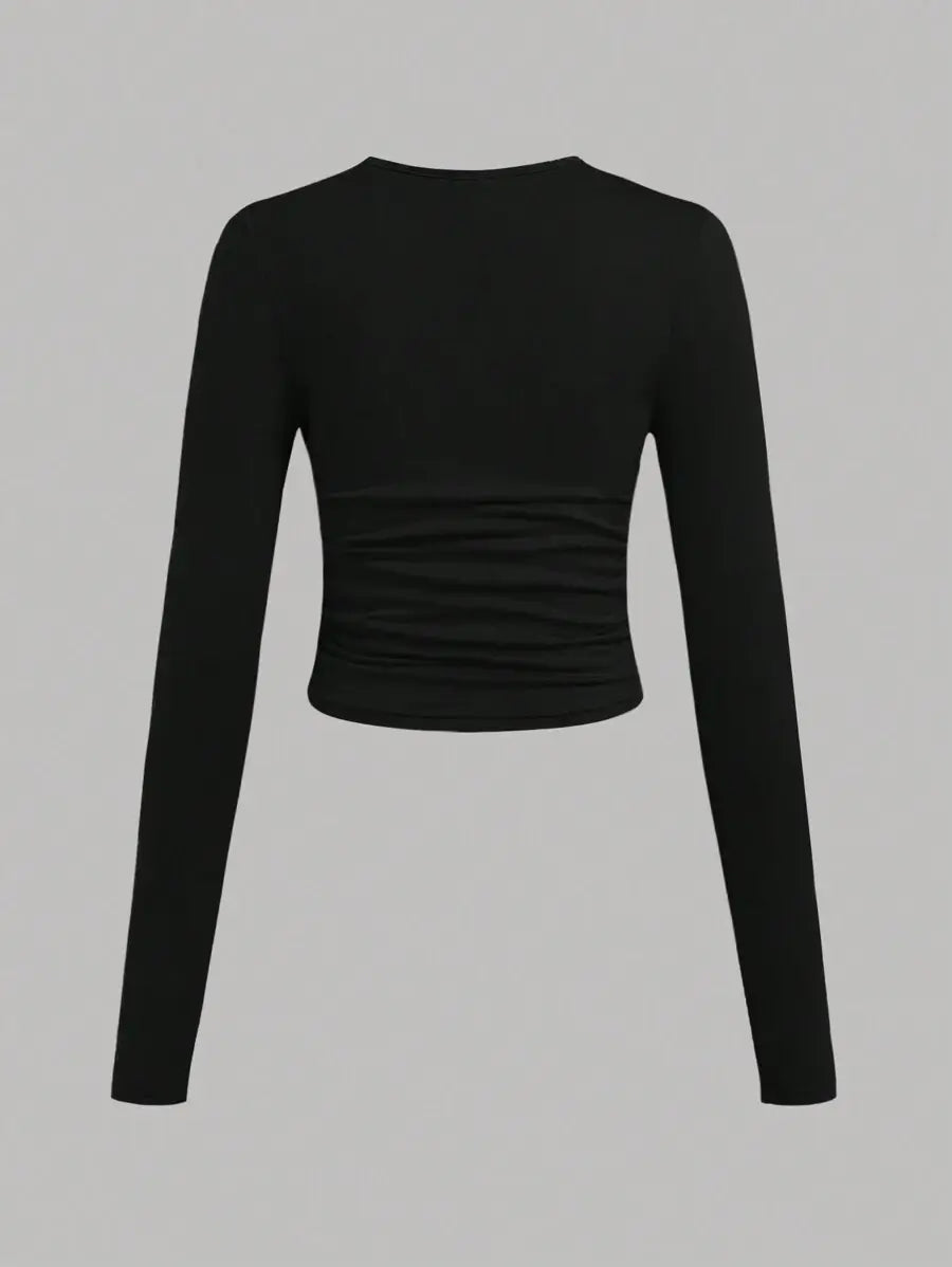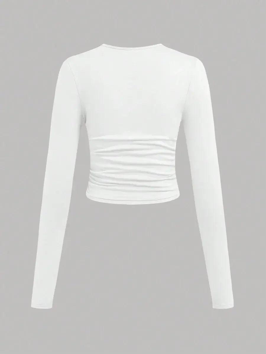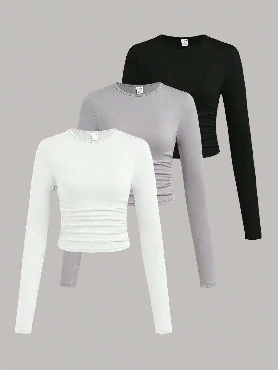 تي شيرت SHEIN Girlism Teen Girl محبوك بلون سادة برقبة مستديرة وأكمام طويلة من 3 قطع/مجموعة