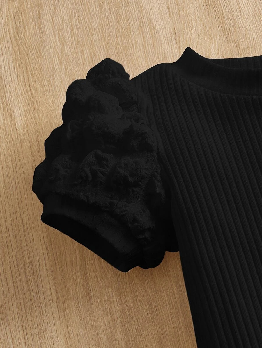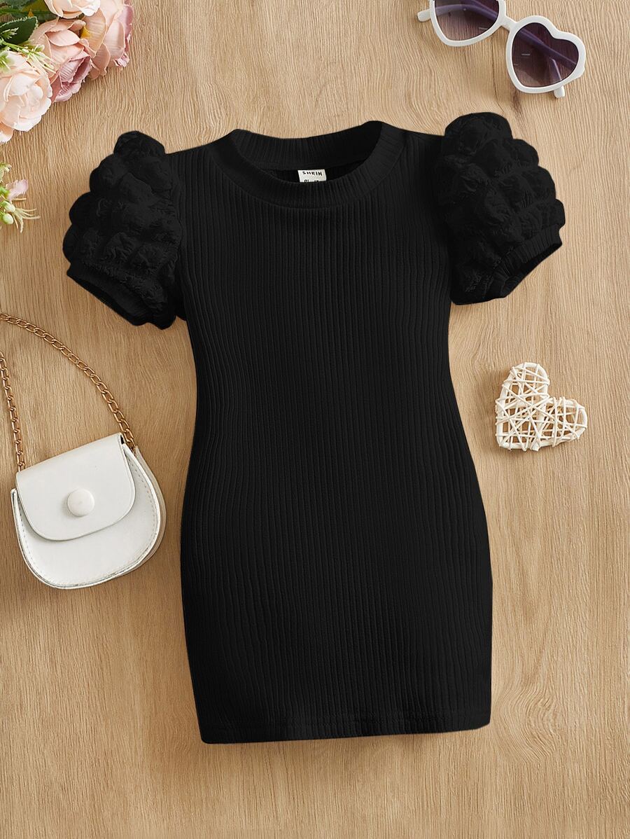 فستان SHEIN للبنات الصغيرات بتصميم أنيق ومريح، يتميز بأكمام منتفخة ومضلعة تضيف لمسة جذابة وناعمة. مصنوع من قماش خفيف ومريح يناسب أجواء الصيف، مثالي للارتداء اليومي أو المناسبات البسيطة، ليمنح طفلتك إطلالة لطيفة وأنثوية طوال اليوم.