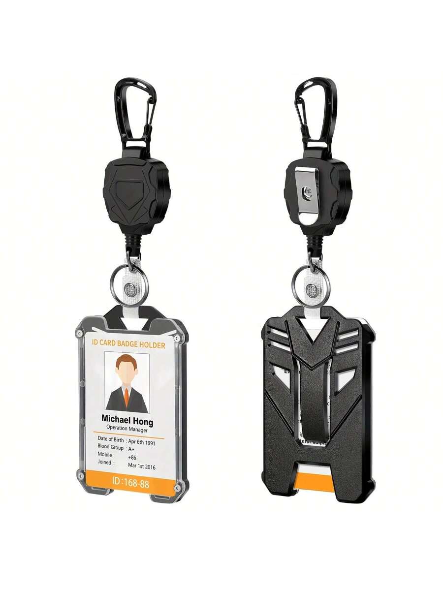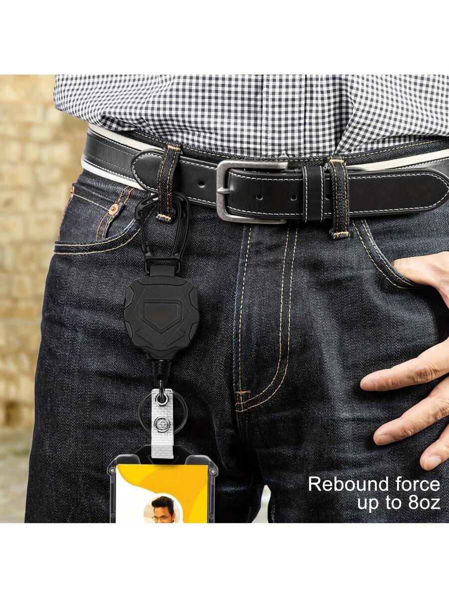 بكرة شارة ثقيلة قابلة للسحب مع حامل شارة هوية وحامل بطاقة هوية وحامل شارة عمودي مع بكلة سحب سهلة لرياضة التسلق مع مشبك حلقات المفاتيح وبكرة شارة