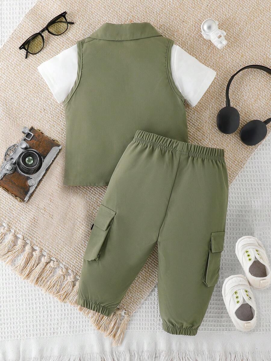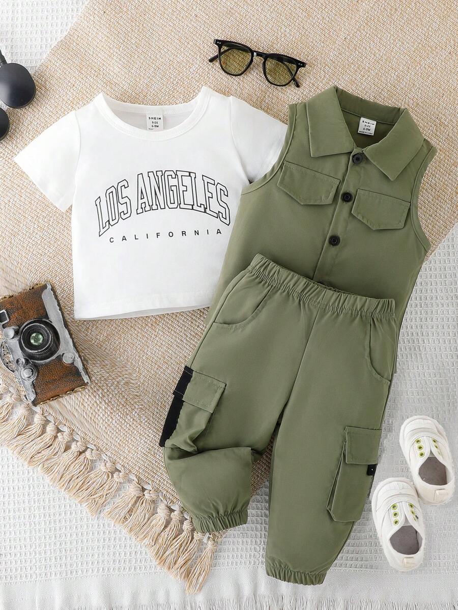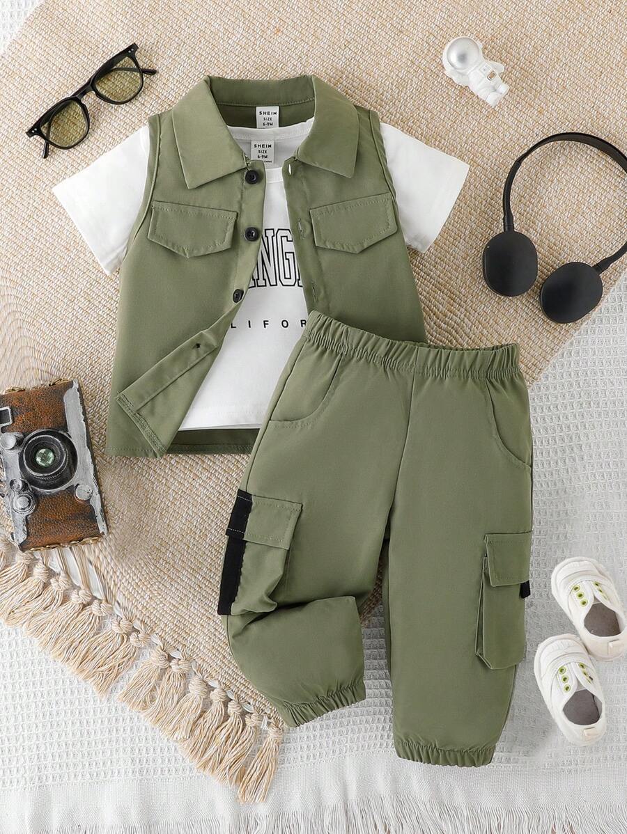 طقم ملابس عمل رياضي كاجوال للأطفال من SHEIN مكون من ثلاث قطع للصيف
