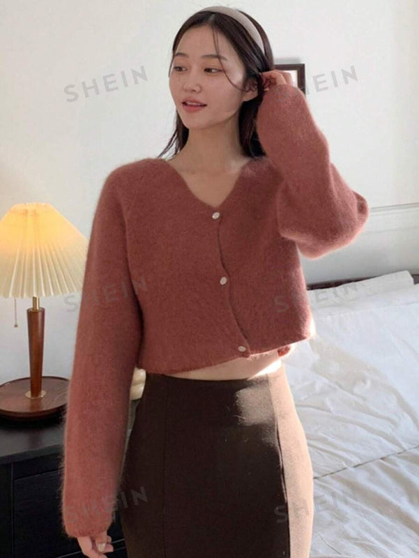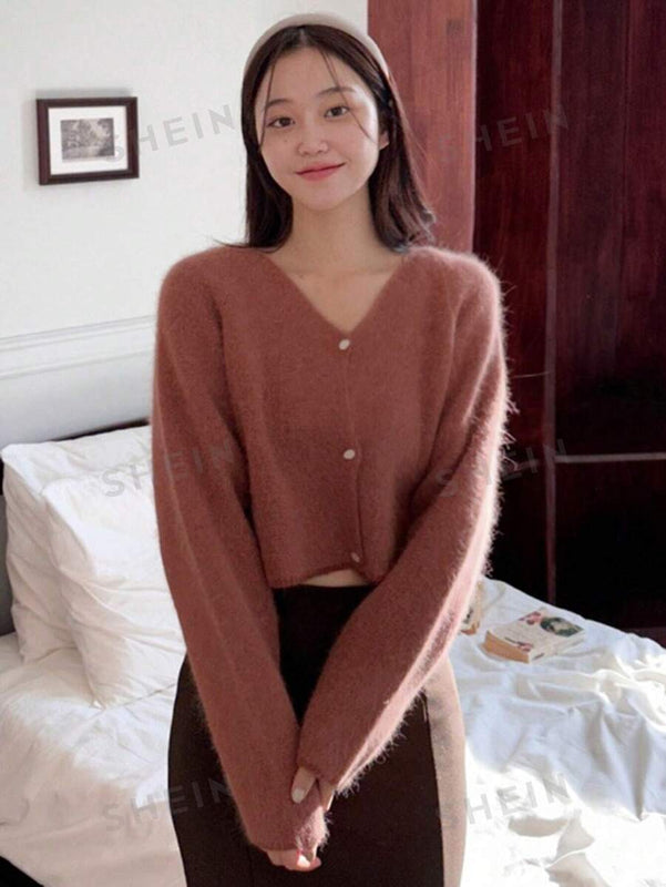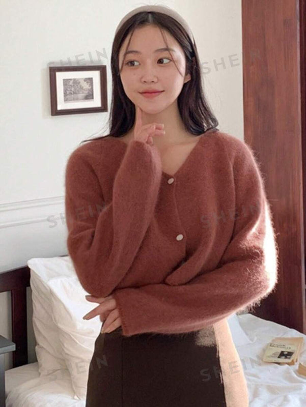 بلوفر بأكمام طويلة ورقبة على شكل حرف v من Shein