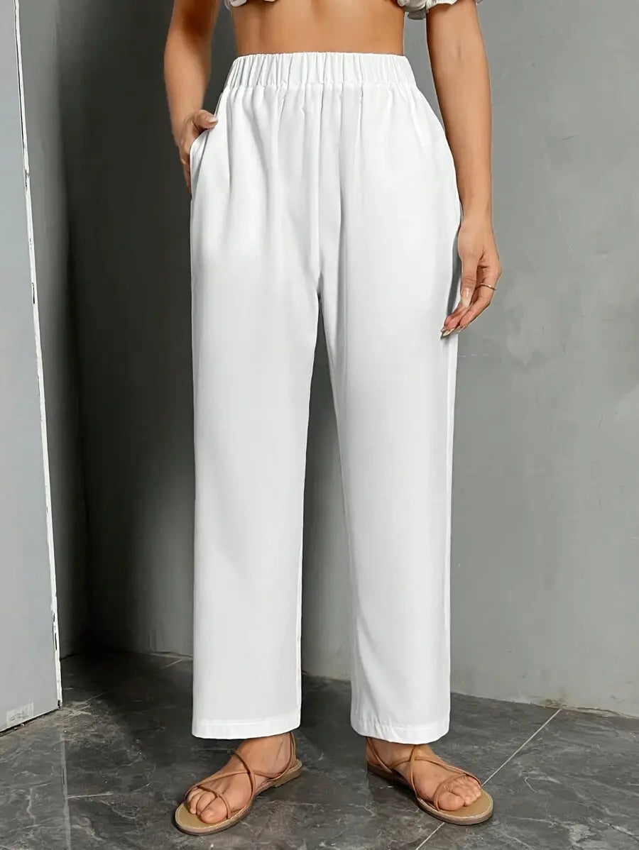 بنطلون نسائي سادة مائل بجيوب وساق مستقيمة من شي ان