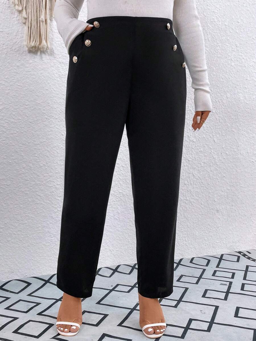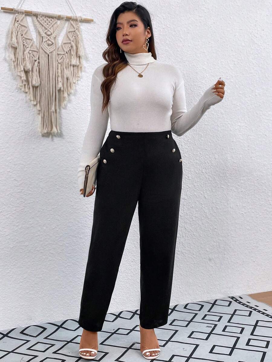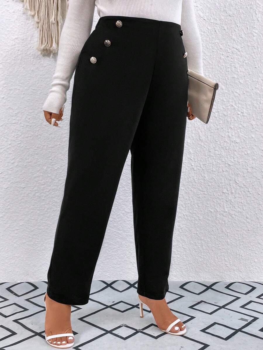 بنطلون بخصر عالي وأزرار من شي إن – مجموعة لون