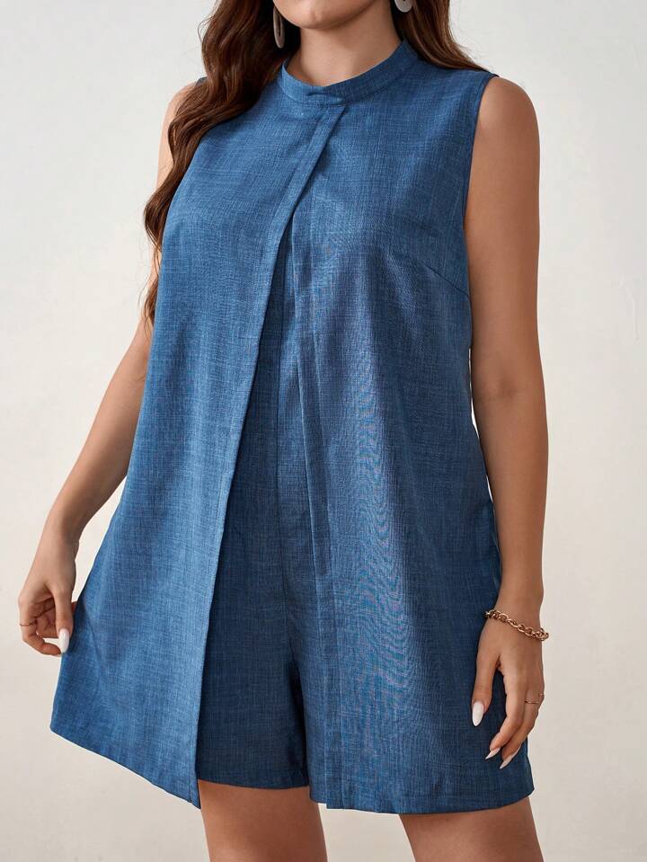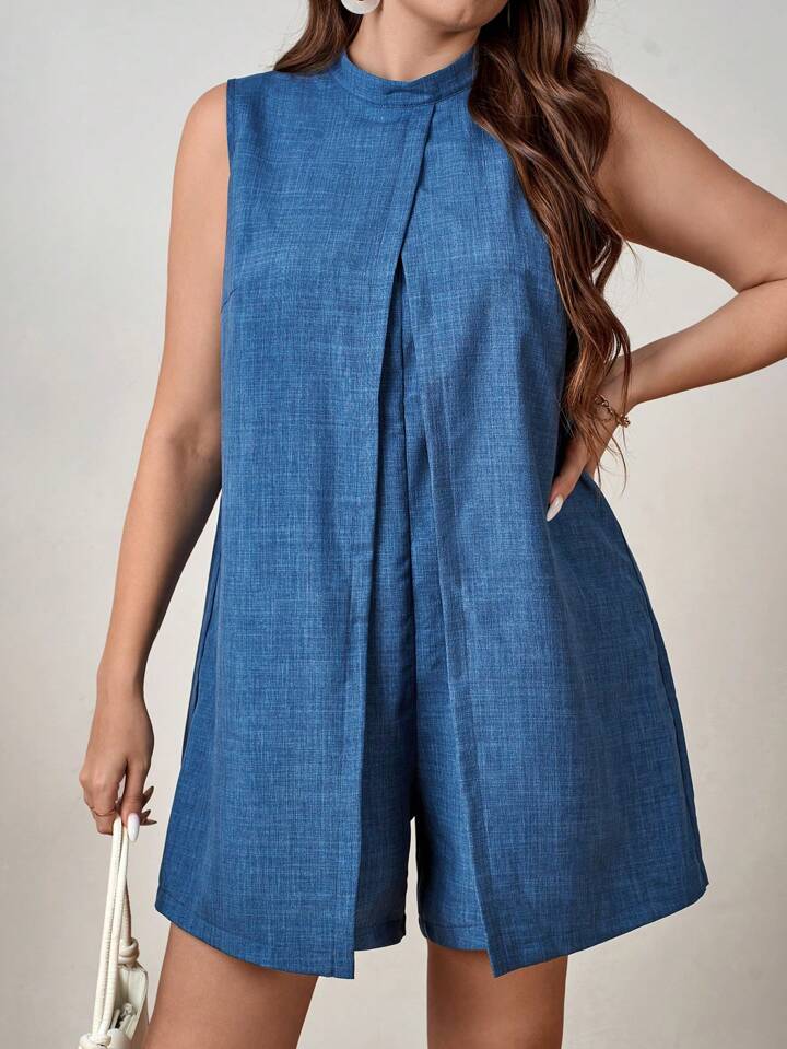 جمبسوت نسائي فضفاض سادة بدون أكمام من مجموعة لون – شي إن