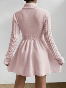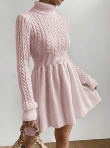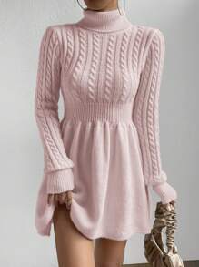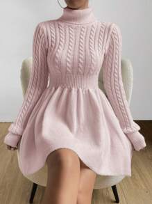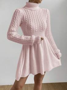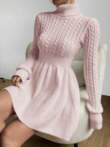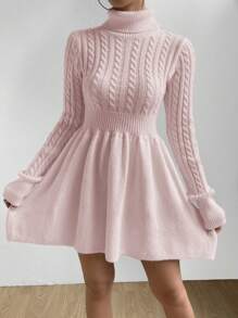 فستان نسائي قصير بياقة عالية ومنسوج بخيوط صوفية من بريفيه – شي إن