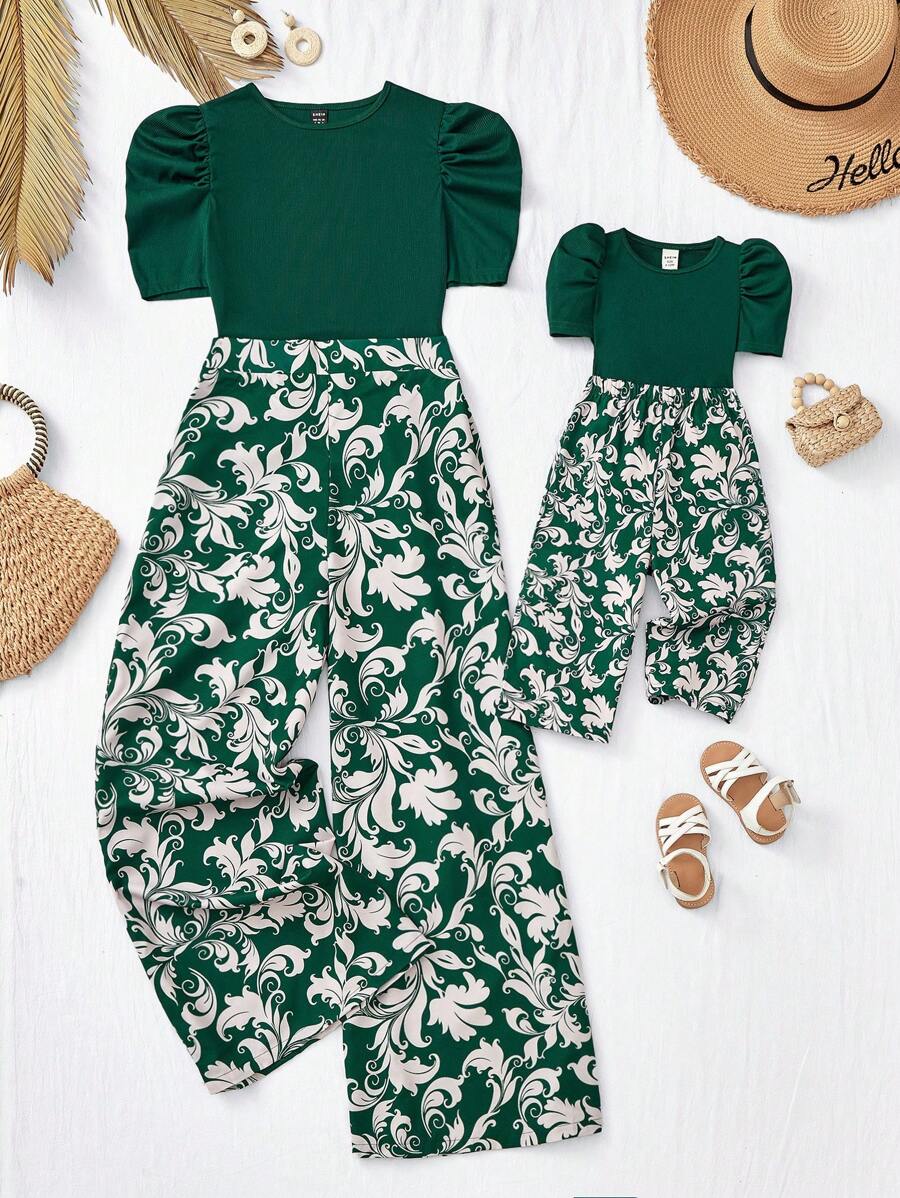 احصلي على إطلالة متناسقة مع صغيرتك مع هذا الطقم من شي إن، المكوّن من تيشيرت بأكمام قصيرة وبنطال طويل بطبعة زهور صيفية. مثالي للأنشطة اليومية والمناسبات الصيفية، يُباع كل طقم للأم والطفلة بشكل منفصل.