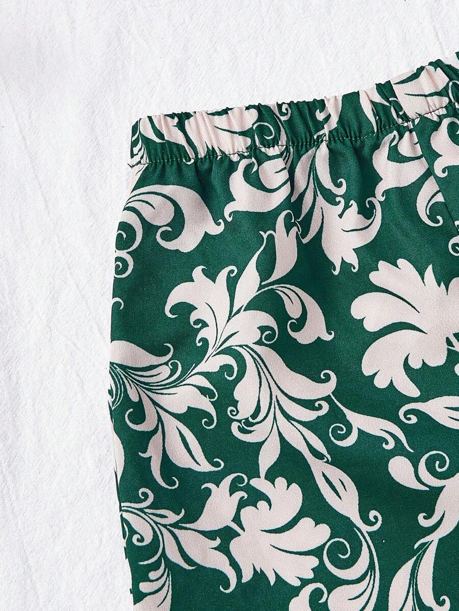 طقم من شي إن – تيشيرت بأكمام قصيرة وبنطال طويل بطبعة زهور صيفية