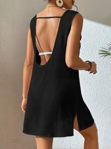 فستان كوفر آب صيفي سادة بفتحة جانبية بدون بيكيني من شي إن