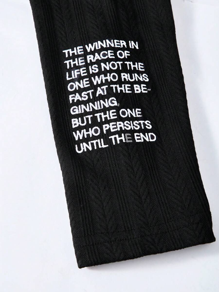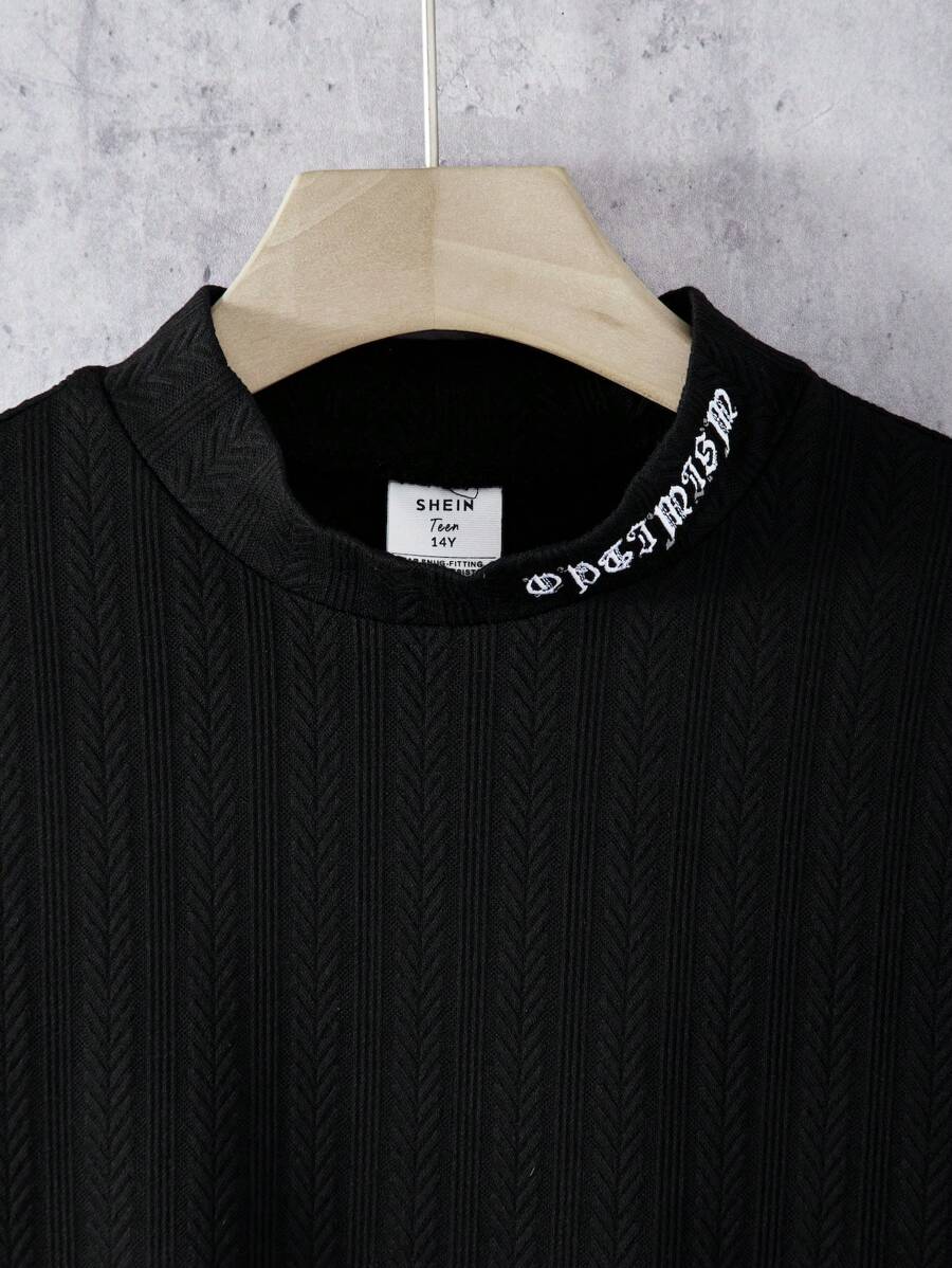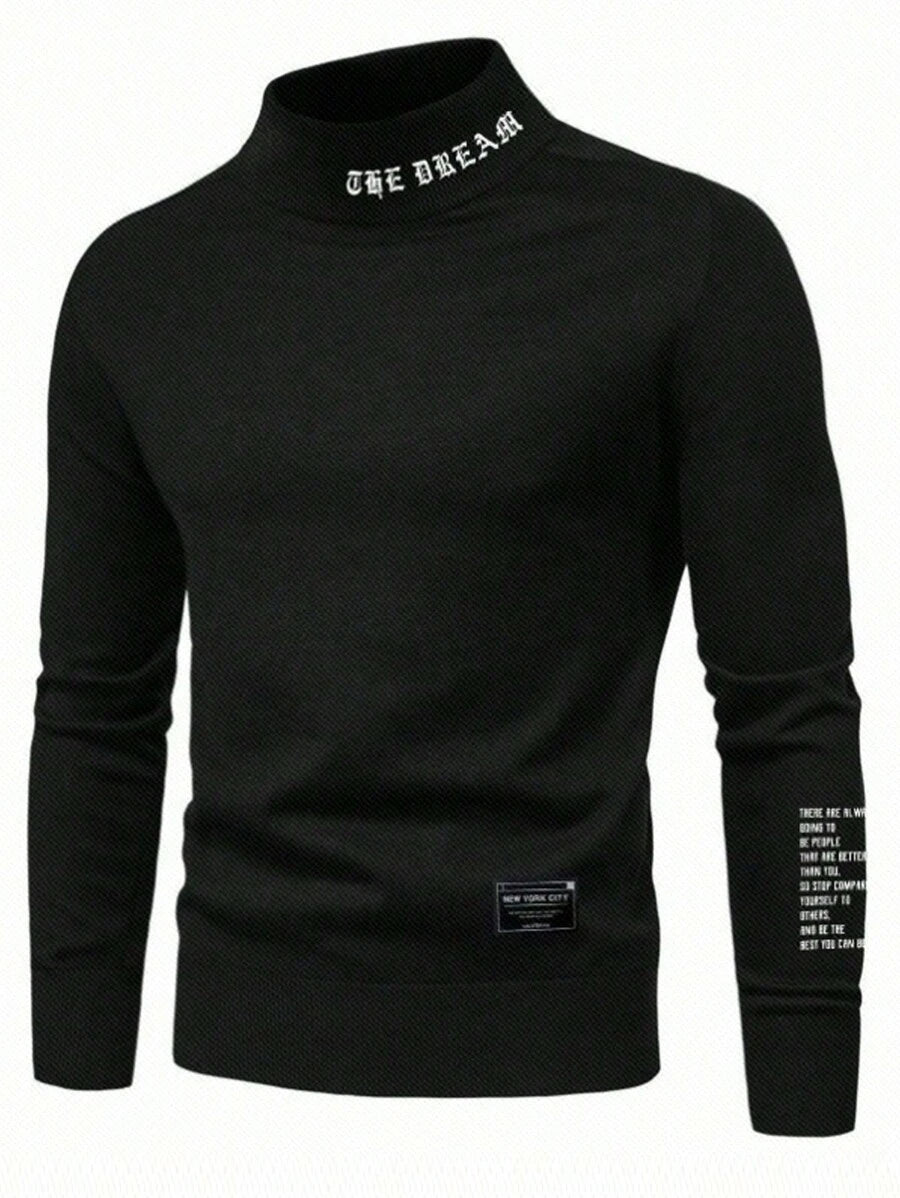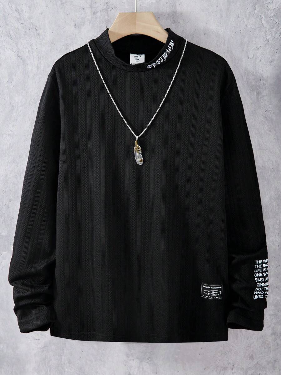 بلوفر ولادي كاجوال أسود بأكمام طويلة ورقبة عالية مطرز بحروف من شي إن