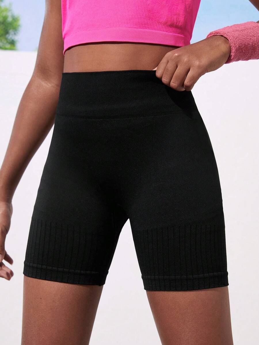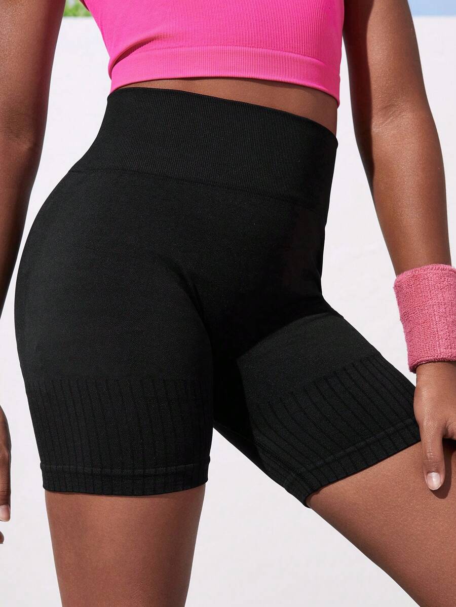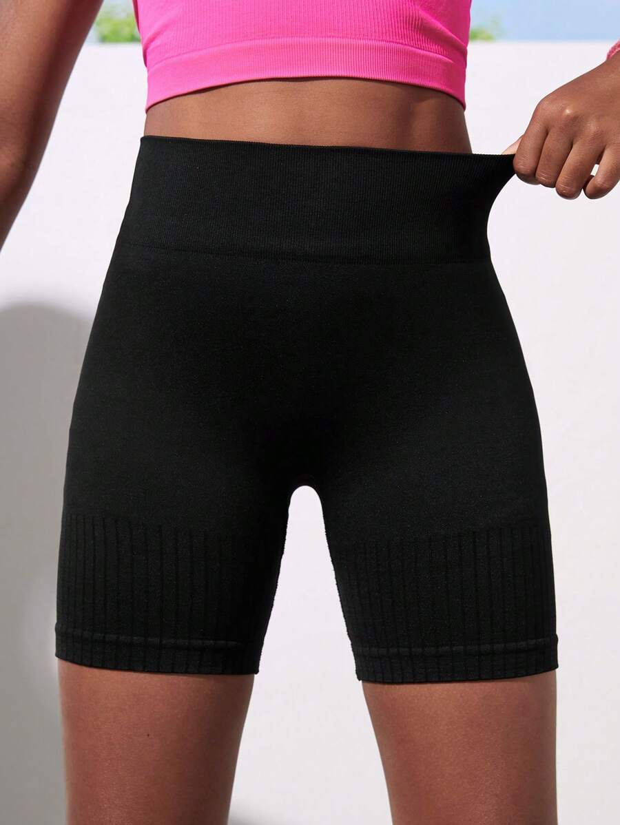 شورت رياضي أسود سلس للبنات من SHEIN Tween – مناسب للجري، اليوغا،