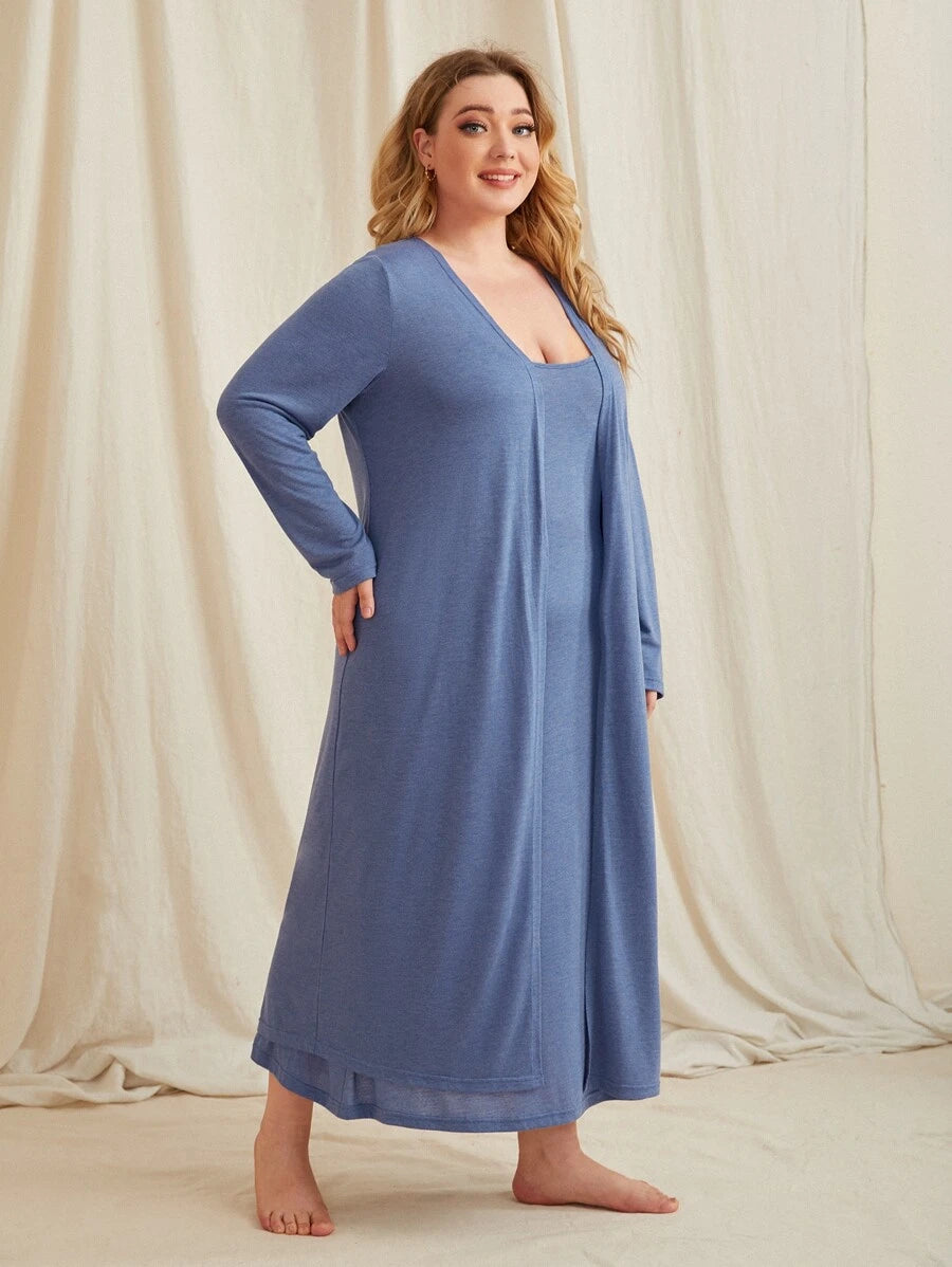 طقم نسائي: روب مفتوح من الأمام وقميص داخلي سادة من يونيتي – شي إن
