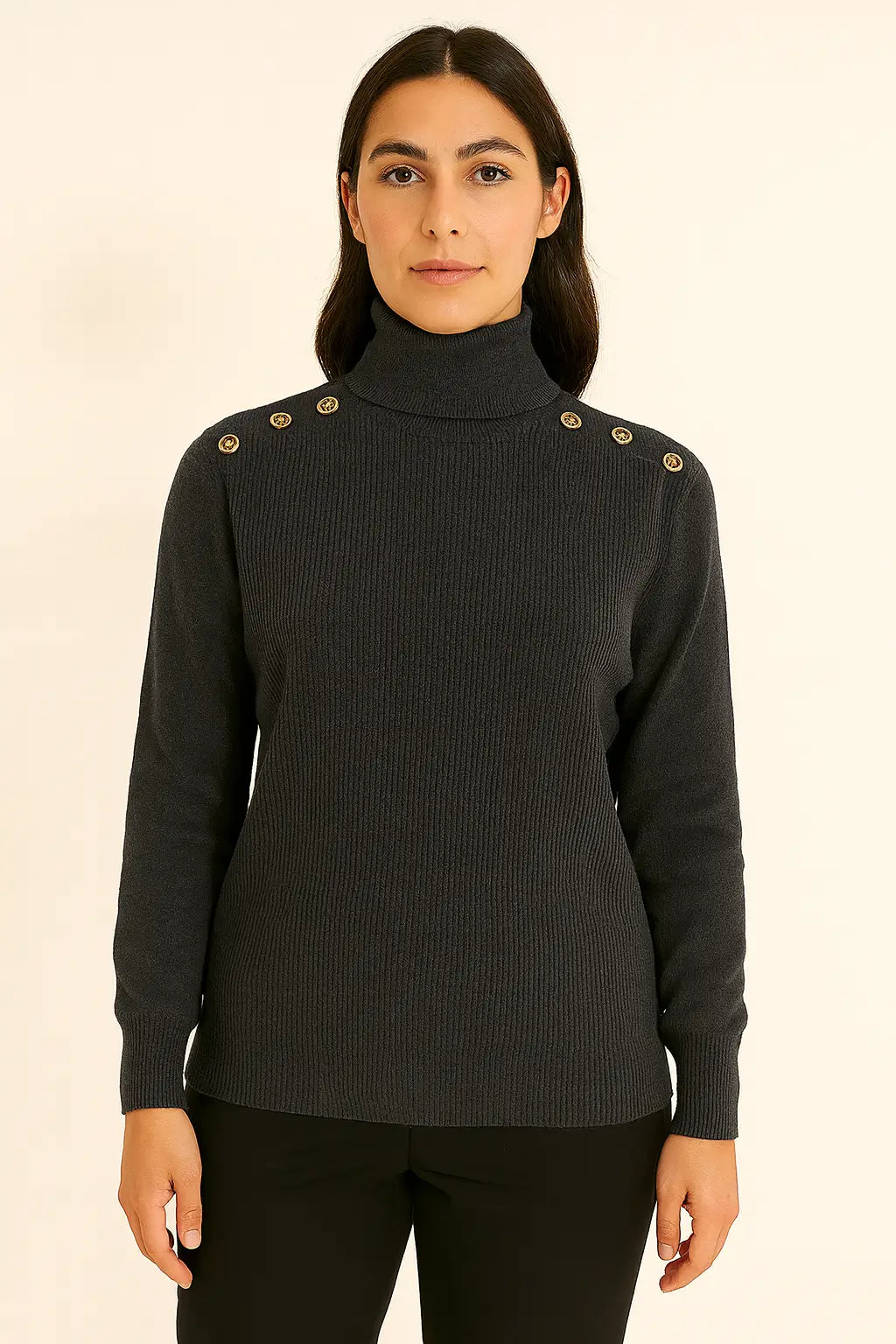 بلوفر أنيق من Shein باللون الرمادي الداكن، يتميز بياقة عالية تمنح دفئًا إضافيًا مع أزرار ذهبية على الكتف تضيف لمسة عصرية. خامته الصوفية المريحة تجعله مناسبًا للارتداء في الأجواء الباردة، كما أن تصميمه الكلاسيكي متوسط الطول يجعله سهل التنسيق مع الجينز أو البناطيل الكاجوال للحصول على إطلالة شتوية أنيقة ودافئة.