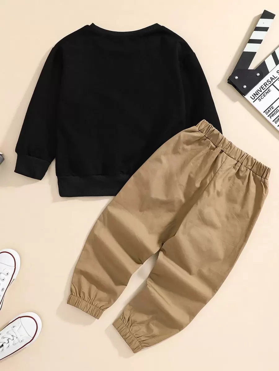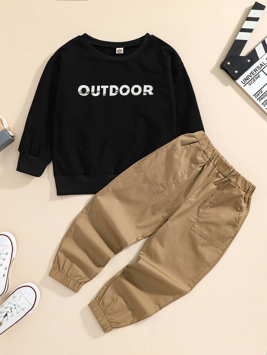 طقم سويت شيرت مزين بطبعة حروف مع بنطلون من يونغ بوي - شي إن