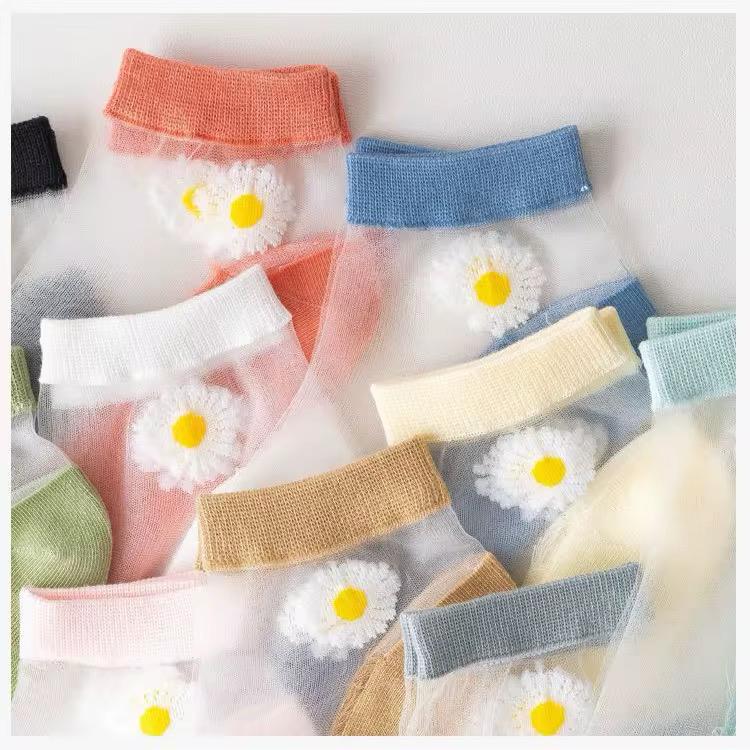 جوارب قطنية قصيرة بطول الكاحل بجزء شفاف وجزء قطني