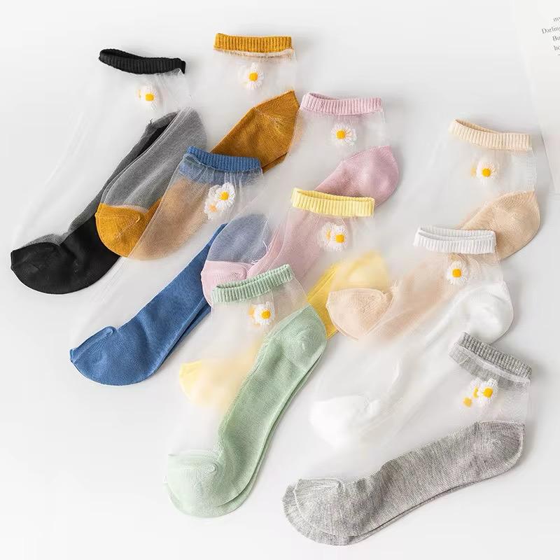 الجوارب دي هتدي رجلك راحة وستايل في نفس الوقت 👣✨ الجزء الشفّاف من فوق يدي لمسة خفيفة وشياكة، والجزء القطني من تحت مش بس مريح لكن كمان عملي لكل يوم. خالصة يوم طويل أو لبس كاجوال مع سنيكرز، أو حتى وانت قاعد في البيت — مريحة ومبسوطة.