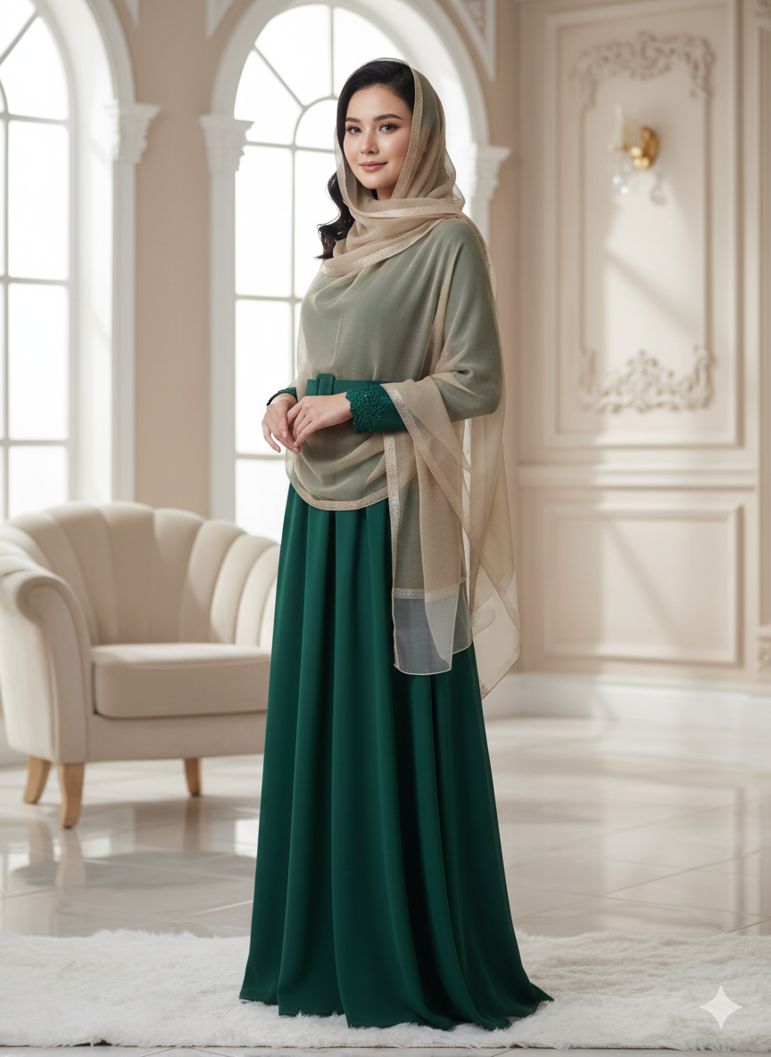 شال شيفون خفيف بلون بيج هادئ، خامته شبه شفافة وملمسه ناعم، مناسب للإطلالات اليومية أو المناسبات البسيطة. التصميم طولي وانسيابي، مع حواف رفيعة بلون ذهبي خفيف تضيف لمسة نعومة من غير أي مبالغة. يناسب تنسيقه مع قطع كلاسيك أو كاجوال، وبيظهر على الجسم بشكل خفيف ومريح.
