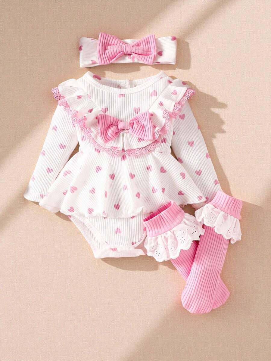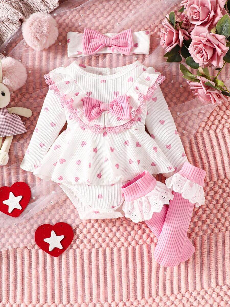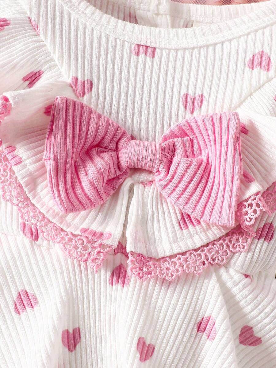 فستان للأطفال مصنوع من خامة قطنية مريحة، بتصميم بسيط بنقشة قلوب صغيرة ولون وردي فاتح. يحتوي على ياقة مزينة بكشكشة ودانتيل خفيف، مع عقدة كبيرة في المنتصف تضيف لمسة ناعمة. مناسب للارتداء اليومي أو المناسبات الخفيفة في الأجواء المعتدلة.