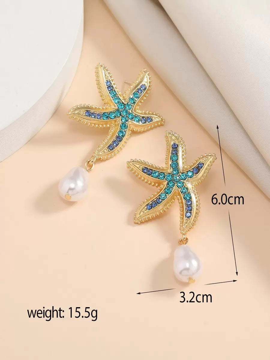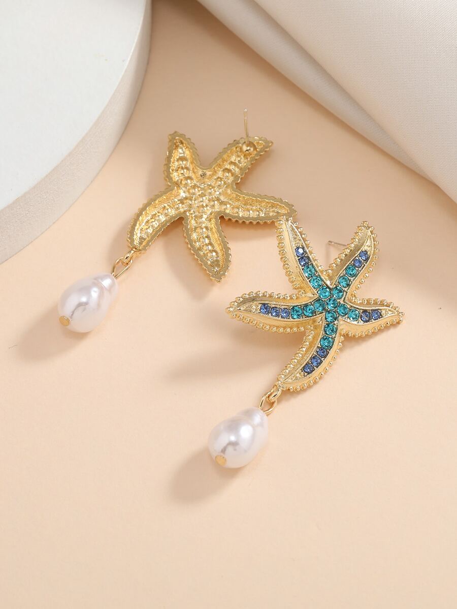 أقراط نجمة بحر مزينة بفصوص لامعة وخرز لؤلؤي