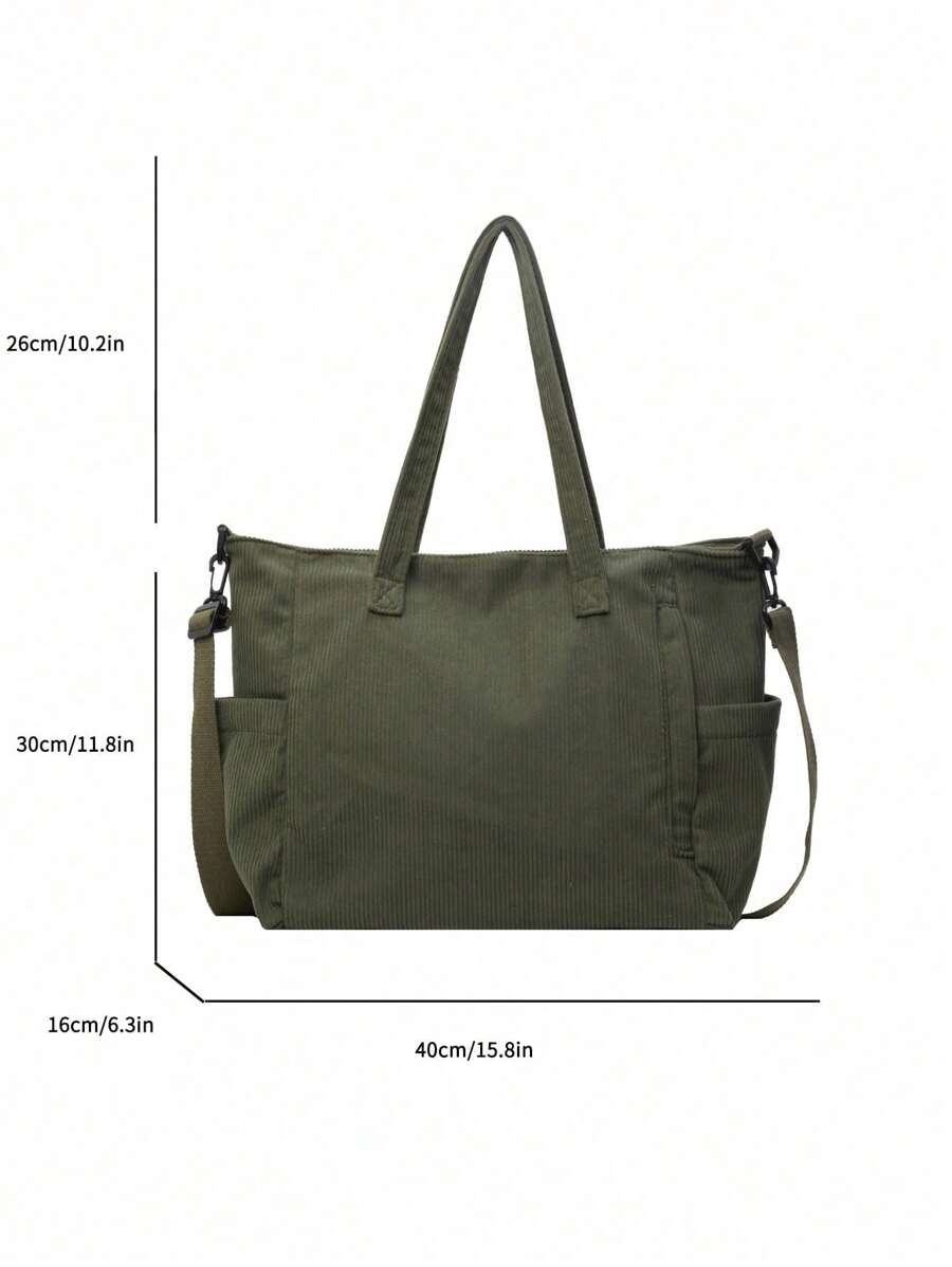 حقيبة يد أنيقة قابلة للحمل بسحاب إغلاق من قماش الدنيم بلون واحد Shein