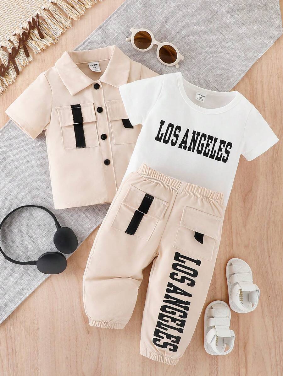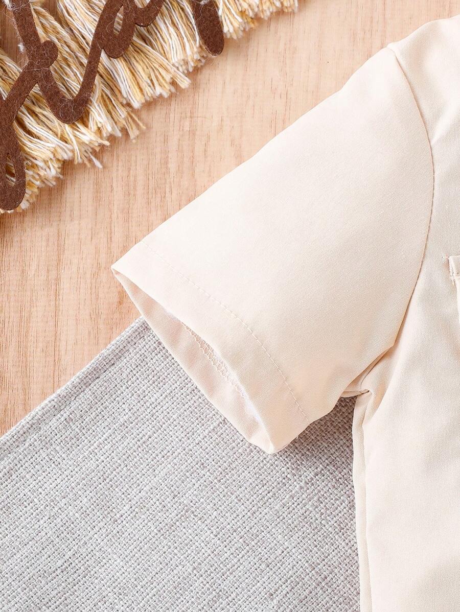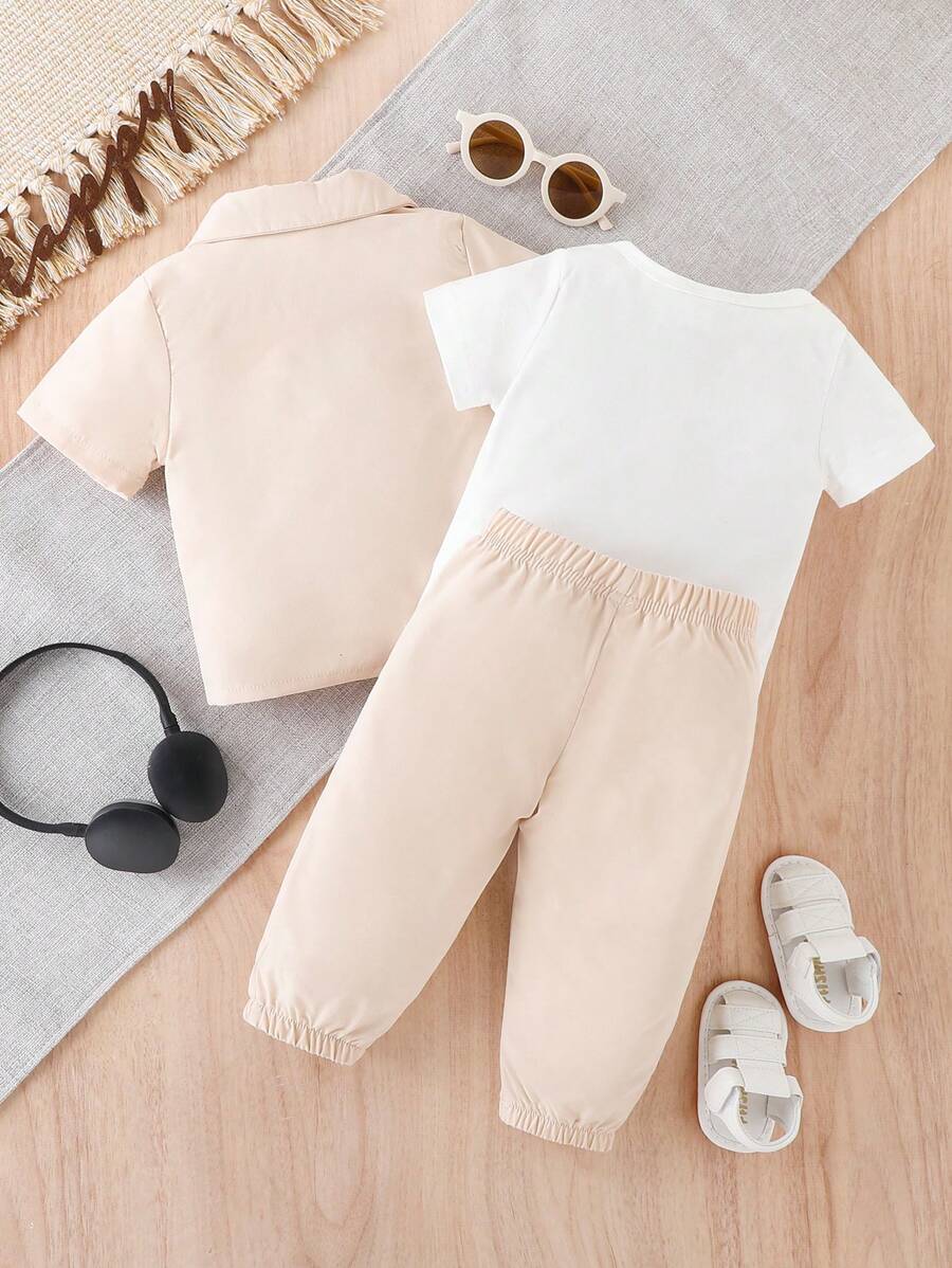 طقم ملابس صيفي للأولاد الصغار، مكون من قميص عمل بأكمام قصيرة وتيشيرت وبنطلون مع جيوب،