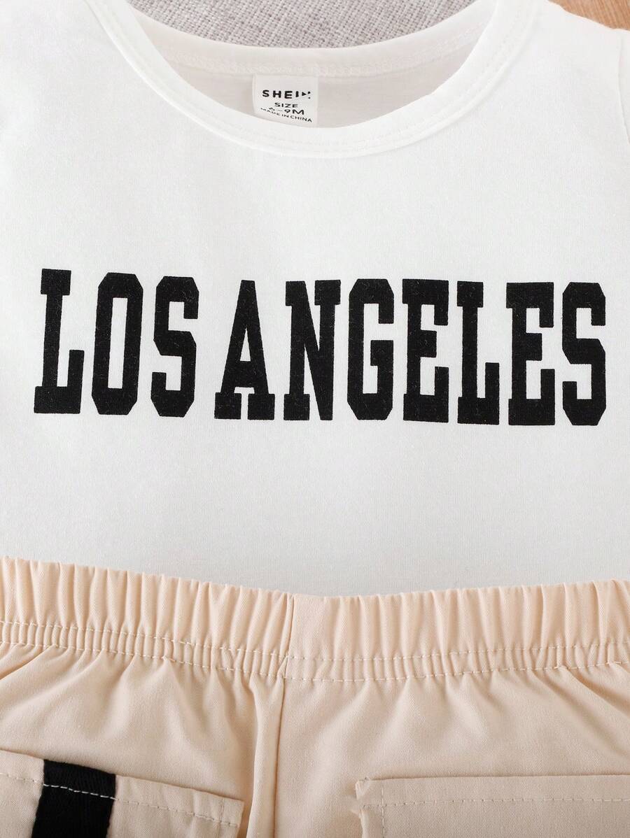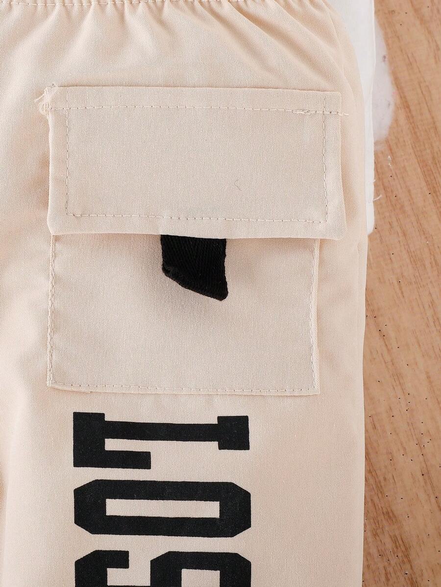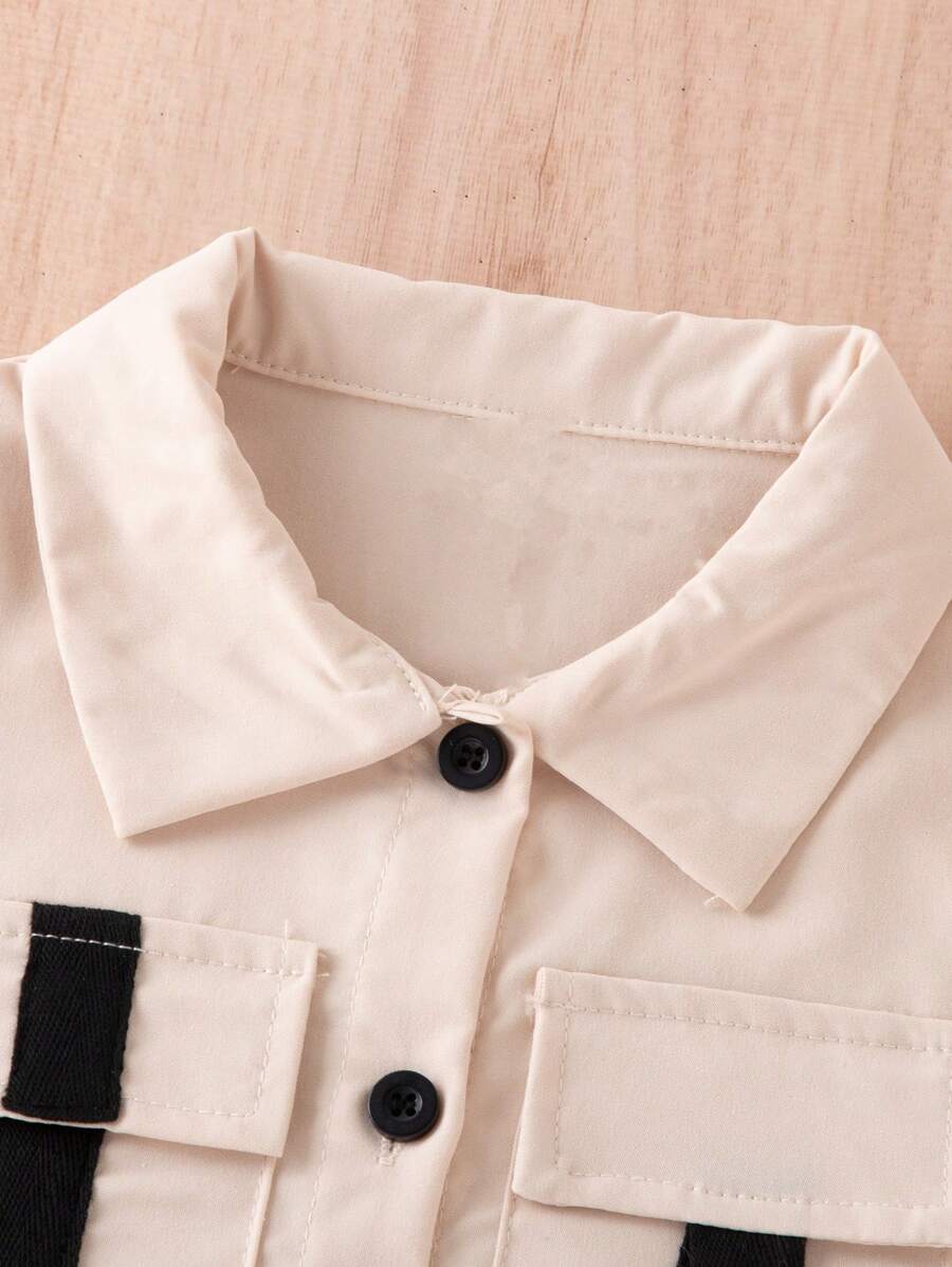 طقم ملابس صيفي للأولاد الصغار، مكون من قميص عمل بأكمام قصيرة وتيشيرت وبنطلون مع جيوب،
