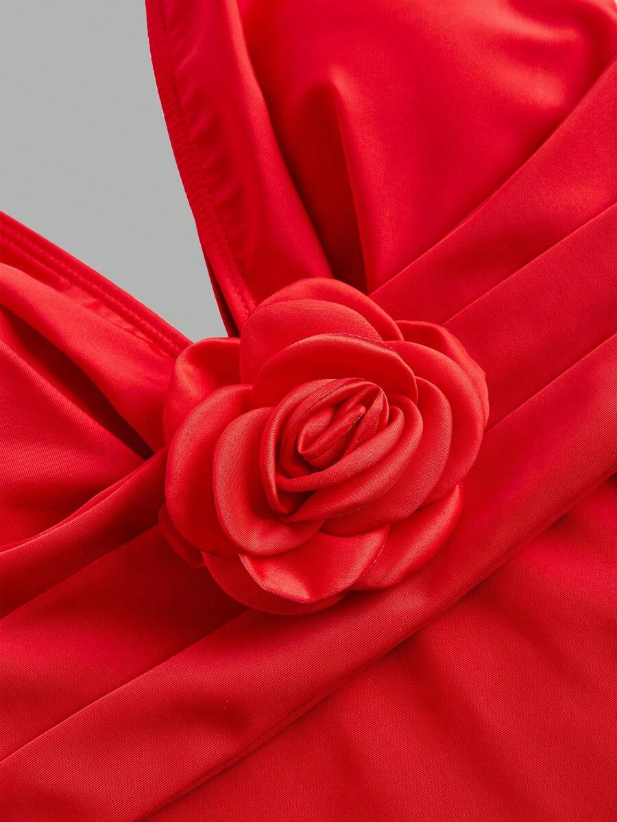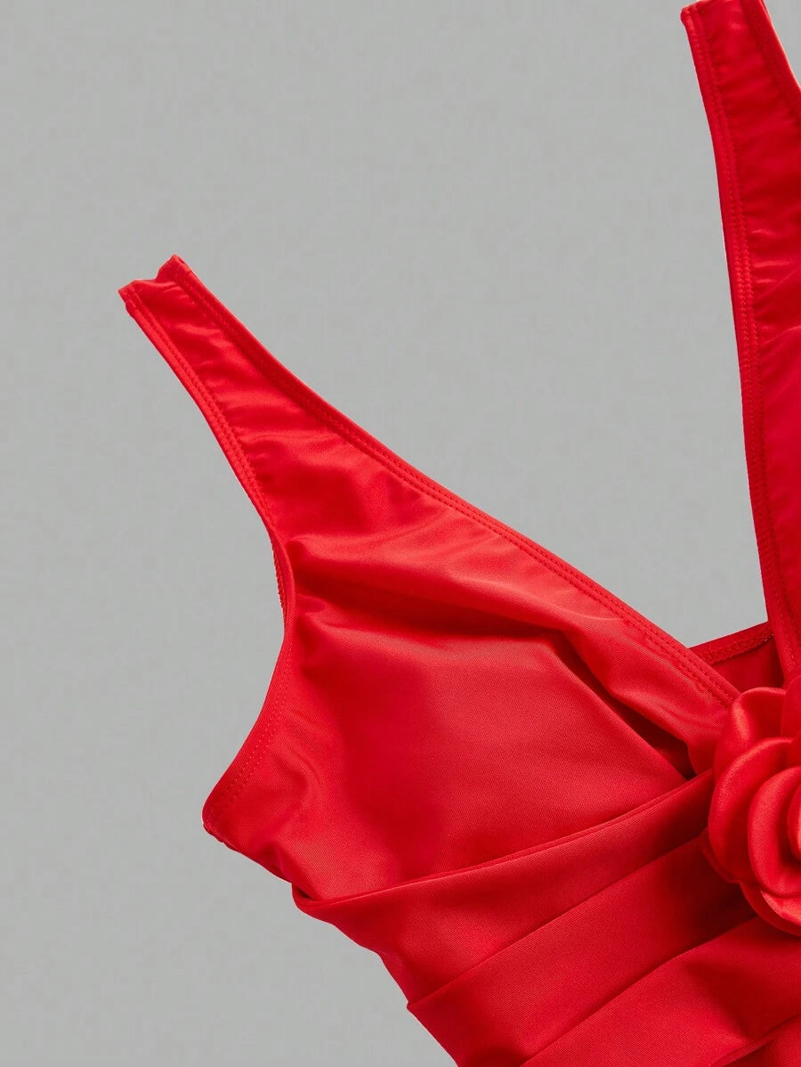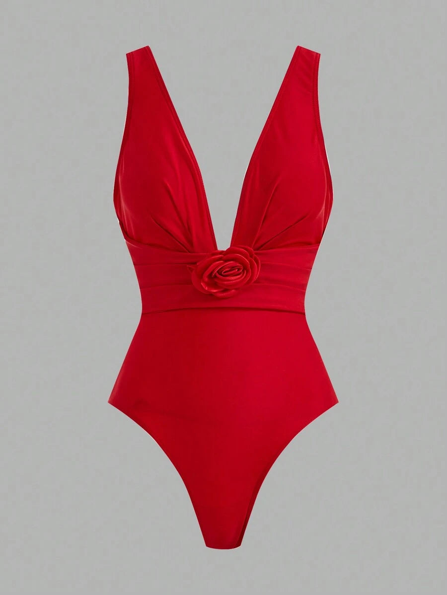بدلة سباحة نسائية من قطعة واحدة من سويم أواسيس، مناسبة للعطلات والشاطئ، مزينة بنقشة زهور ثلاثية الأبعاد، صيفية