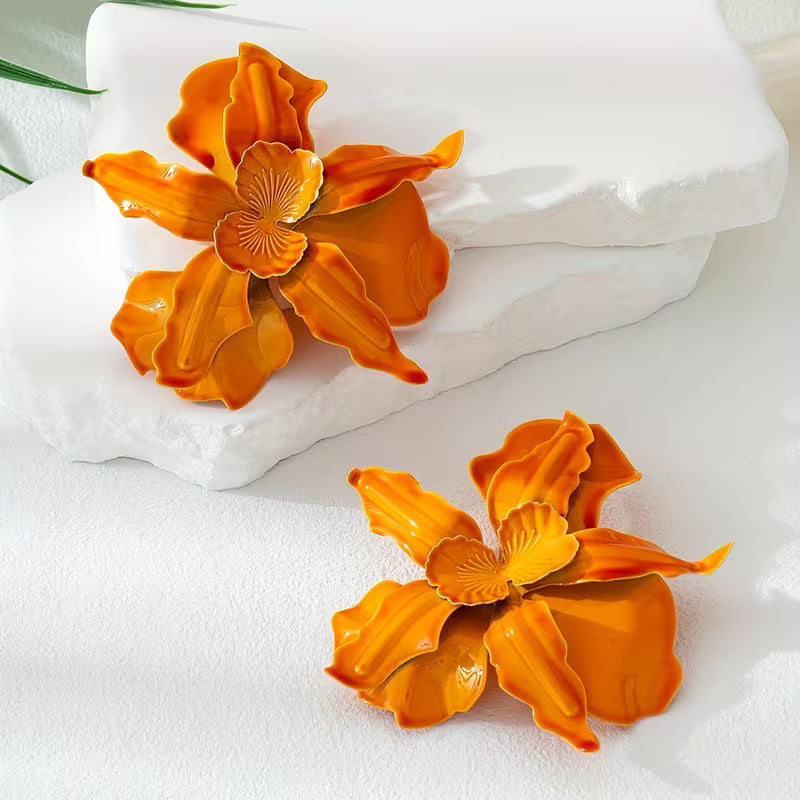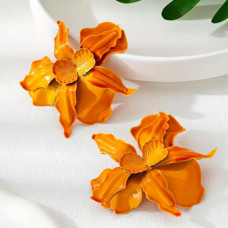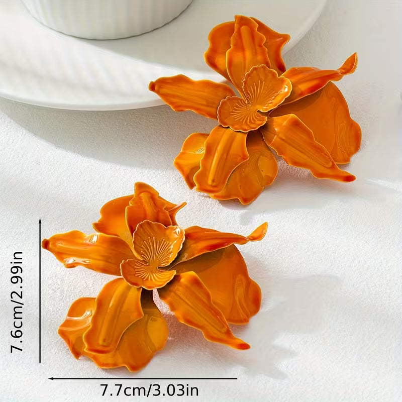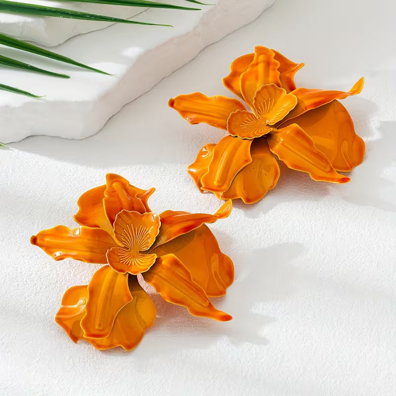 حلق بشكل زهرة برتقالية ثلاثية الأبعاد – أسلوب بوهيمي عصري وخفيف