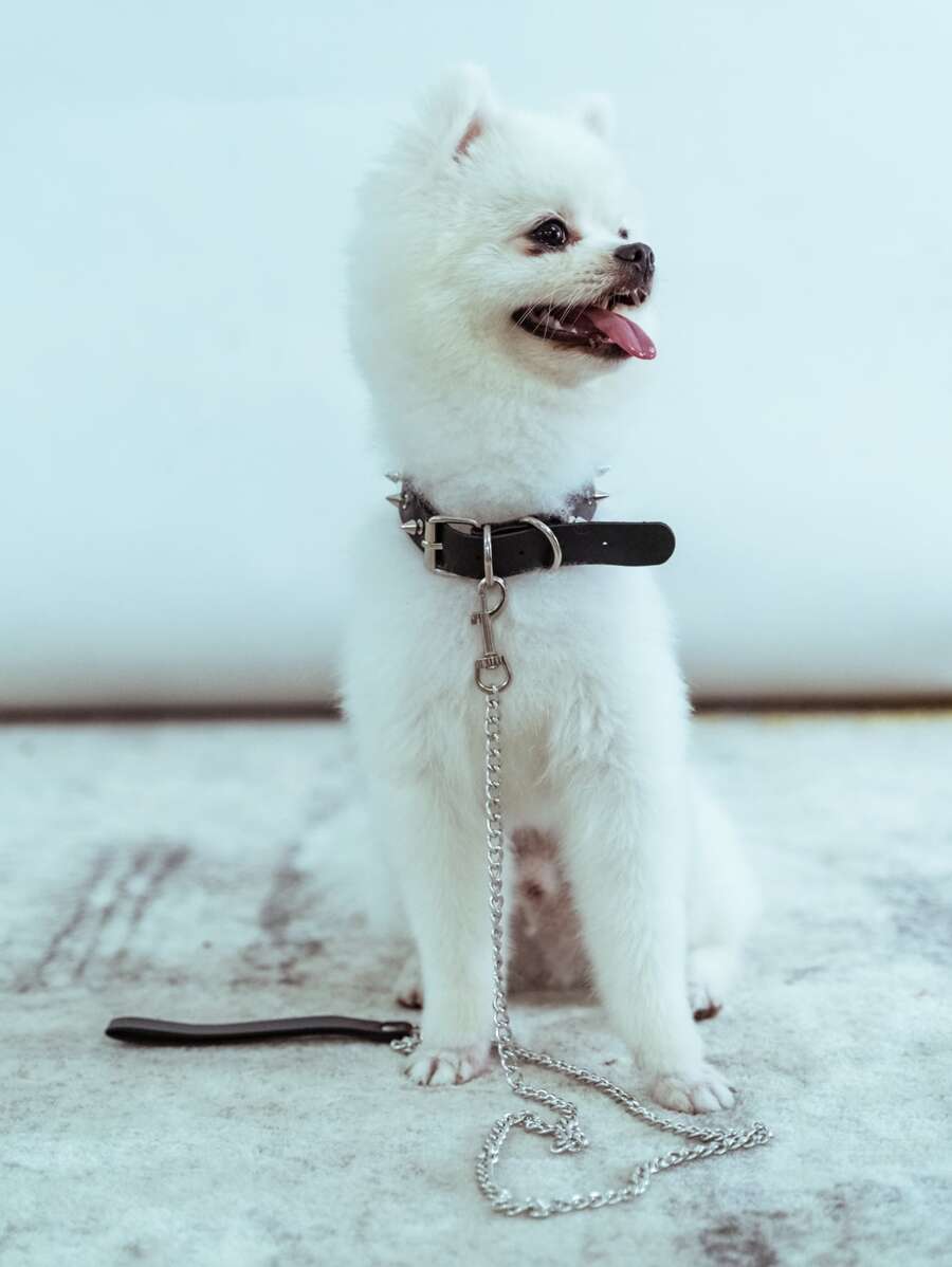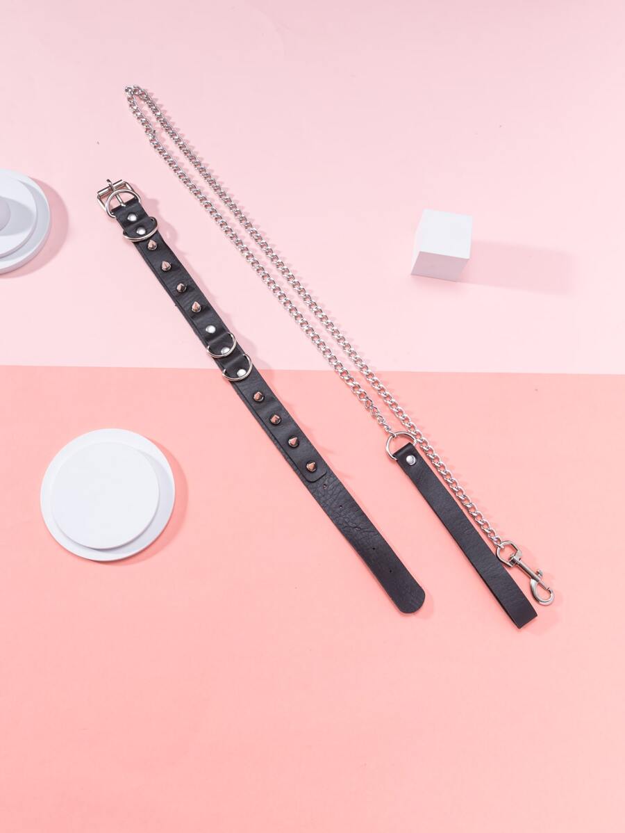 الطقم ده معمول من خامات بسيطة ومصمم بشكل عملي يناسب الاستخدام اليومي مع الحيوانات الأليفة. الطوق بيجمع بين شكل جلدي تقليدي وتفاصيل معدنية صغيرة بتضيف له مظهر واضح، والمقود متوصل بسلسلة معدنية خفيفة بتساعد على التحكم بشكل أفضل. التصميم العام مستقيم وواضح، ومناسب للاستخدام في المشي أو التمرين الخفيف.