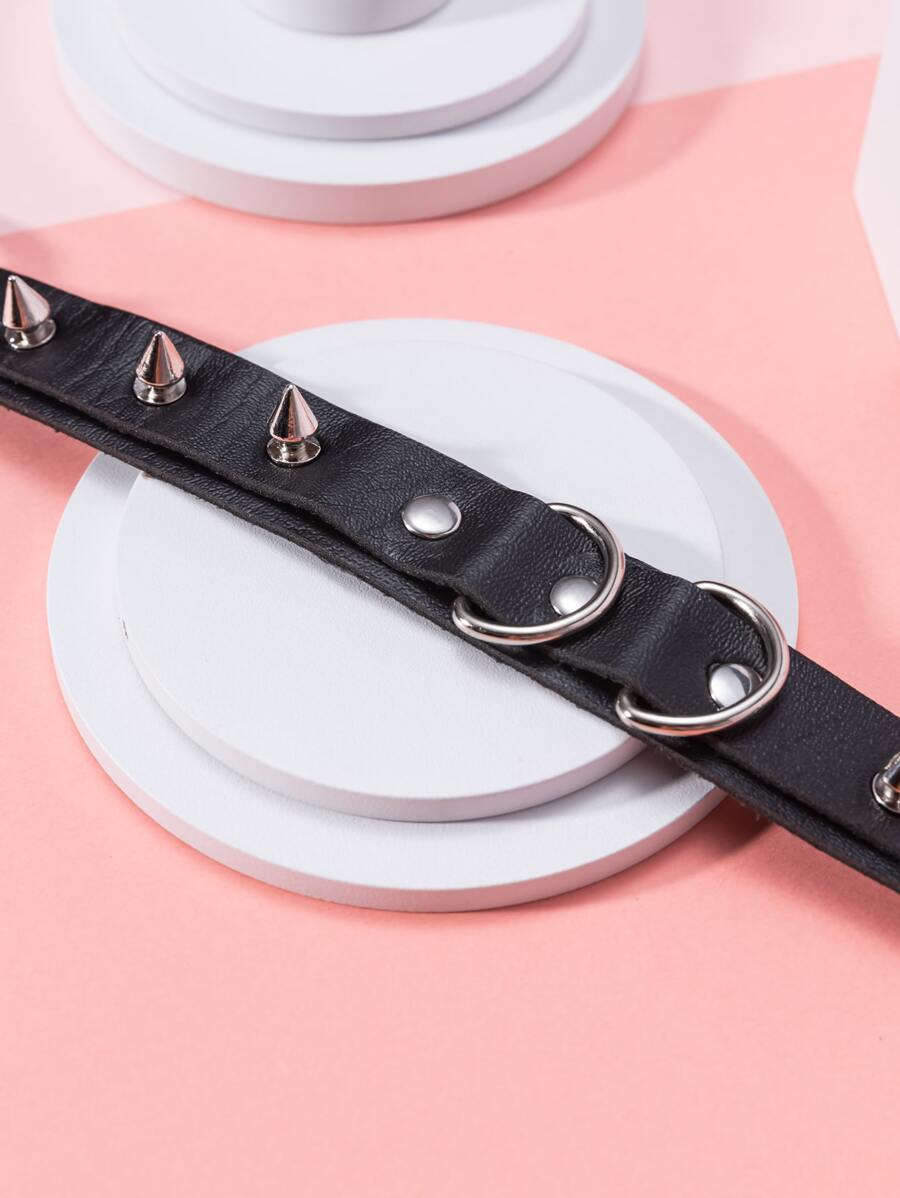 طقم من قطعتين من مقود وطوق الحيوانات الأليفة المزخرف بالمسامير