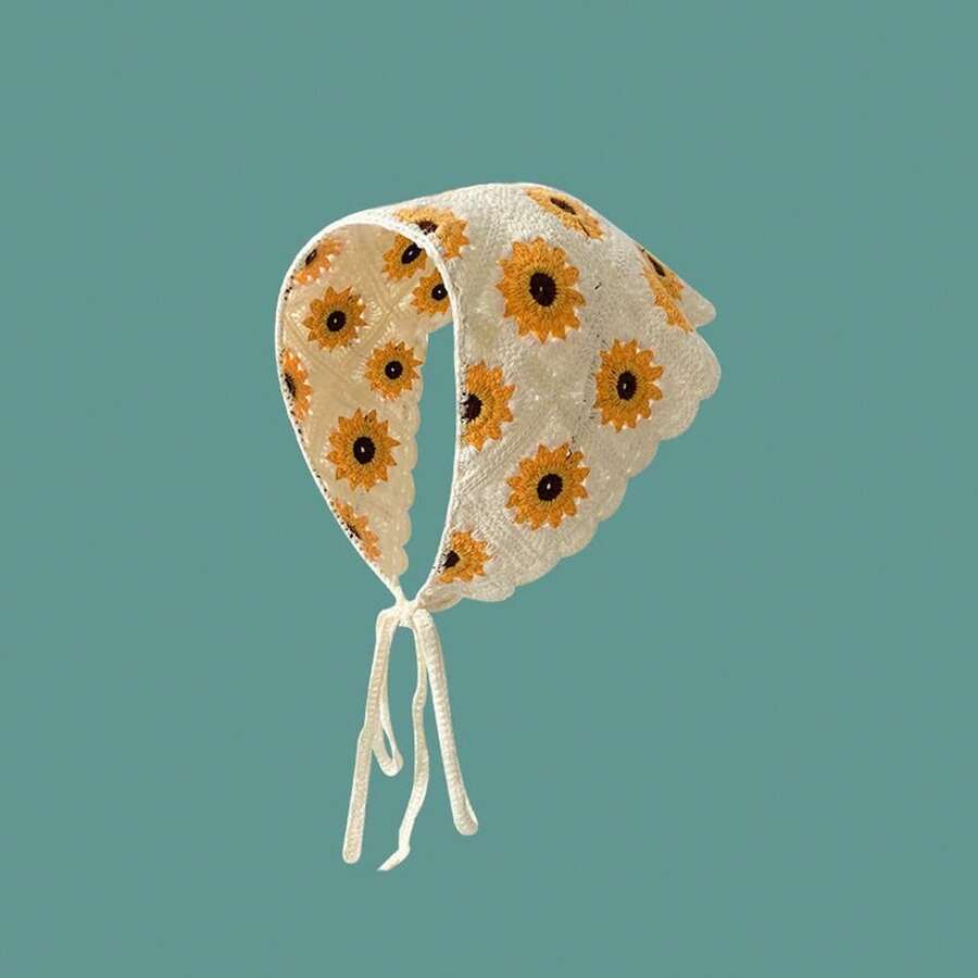 عصابة رأس محبوكة كروشيه على الطراز البوهيمي الفرنسي العتيق للنساء، وشاح مثلث محبوك على شكل زهرة الأقحوان، وشاح رأس مزهر بالفراولة، عصابة رأس هيبي عصرية تُستخدم لتزيين الشعر، باندانا، رباط شعر خريفي وشتوي، إكسسوارات شعر للنساء لملابس العطلات.