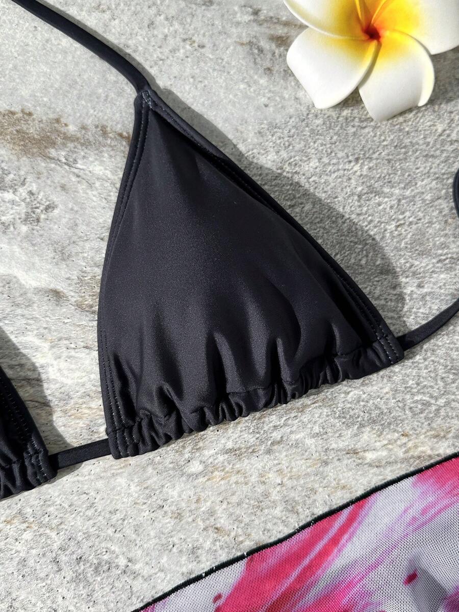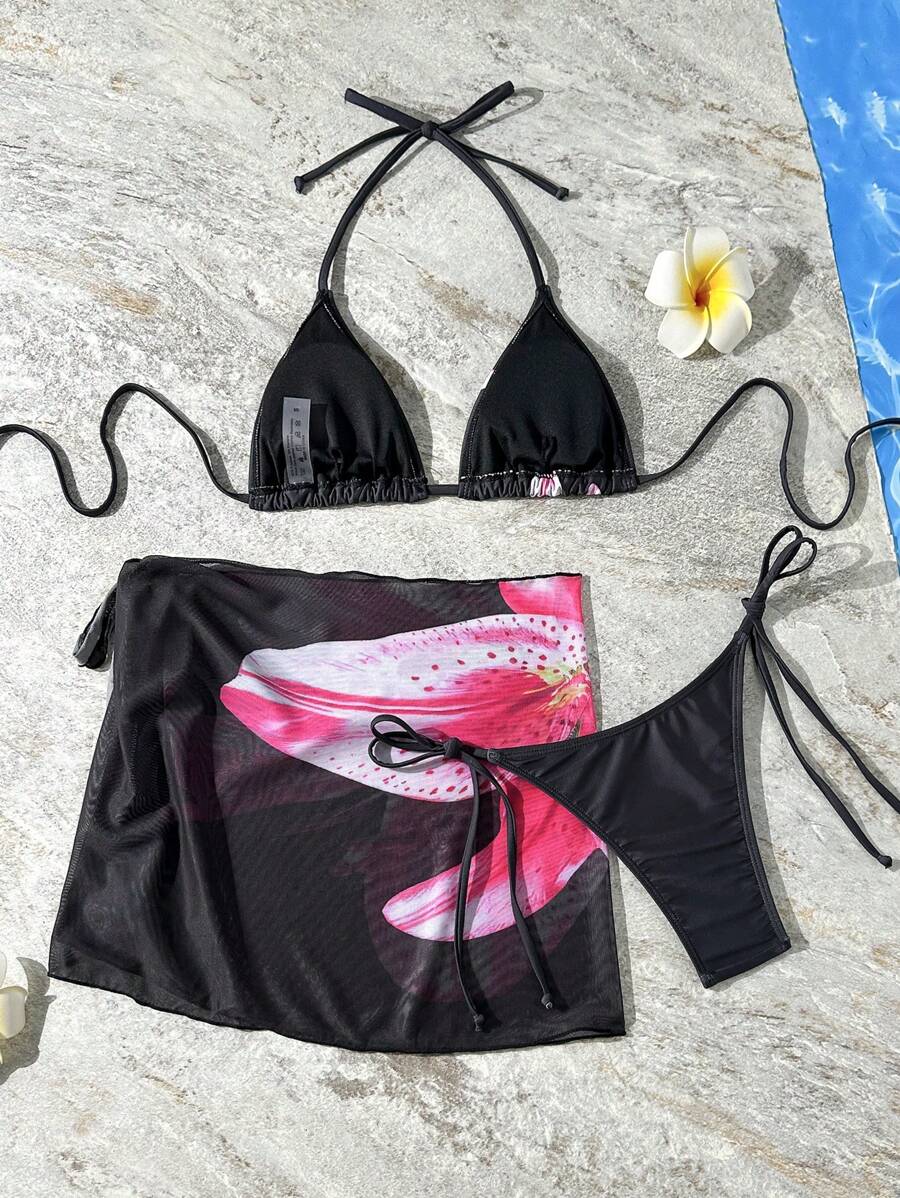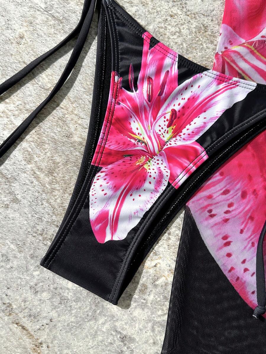 طقم-بكيني نسائي بـ 3-قطع بنمط تدرّج الألوان بطبعة أزهار